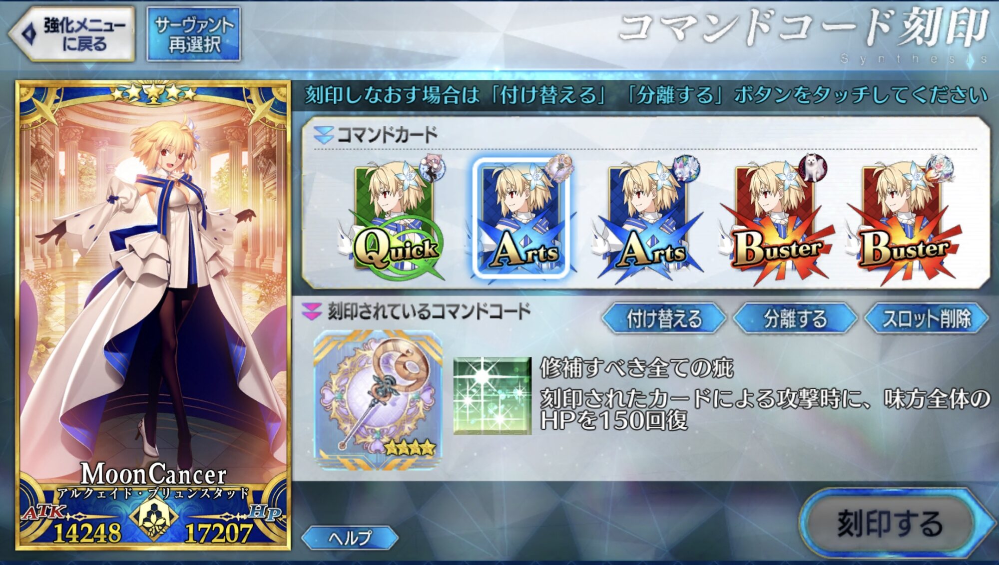 全部の再臨がクオリティ高いし綺麗だし可愛いし、戦わせても強いし宝具演出めっちゃ凝ってるで文句のつけようがないオメガスペックサーヴァント