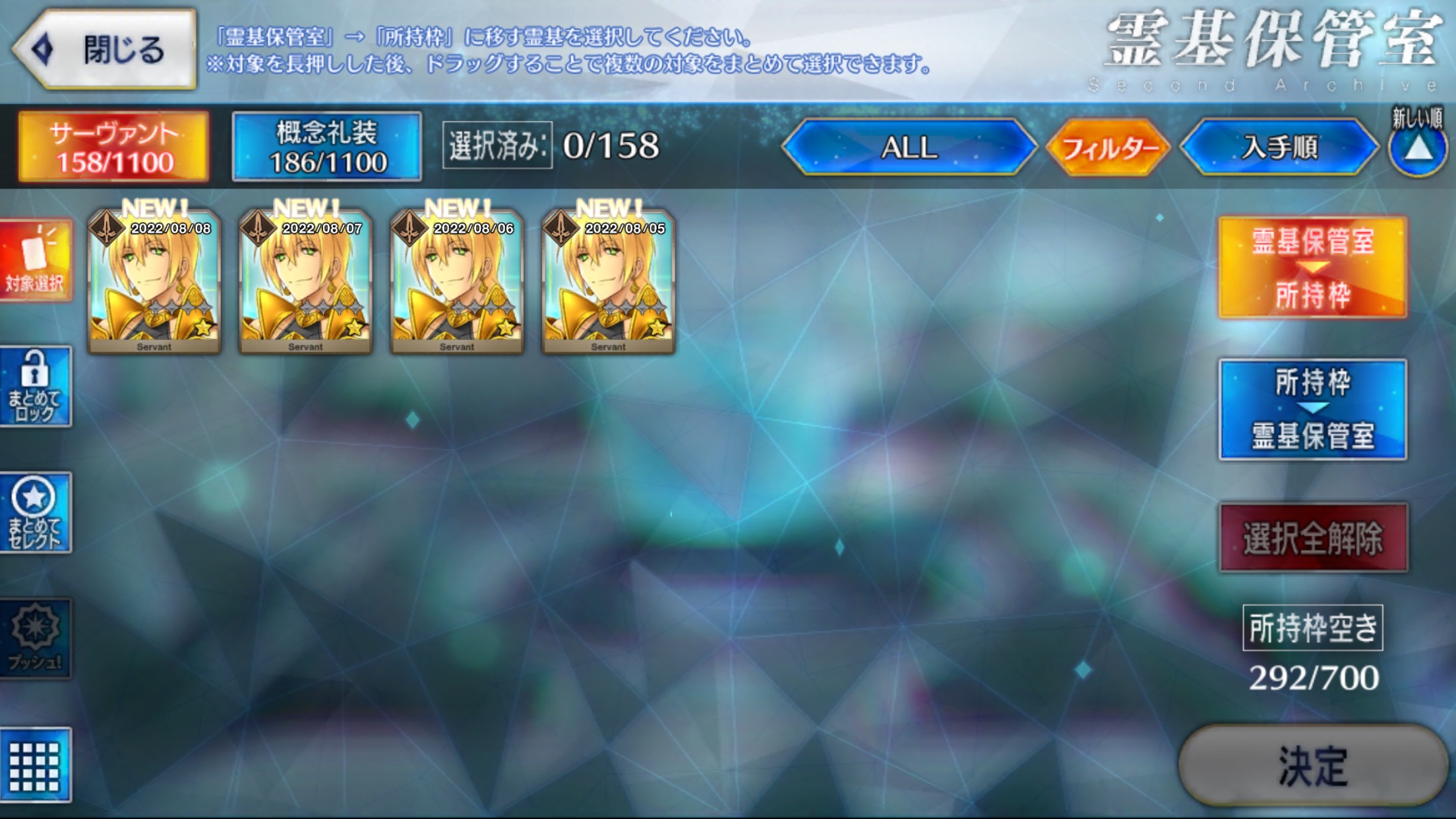 1、ともにアペンド2をマックスにしたスキルマバゼットさん、ボイジャー君、スキルマ姫君を用意します。