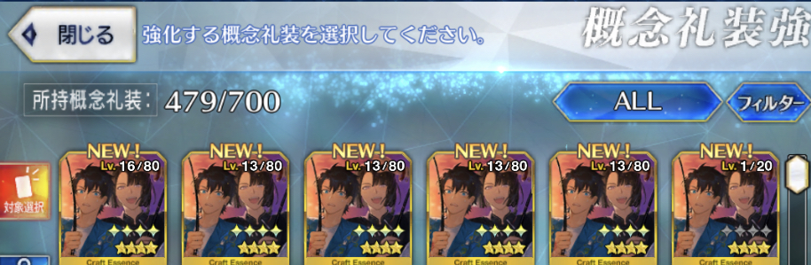 礼装とかイベ仕様に並べ直しとくといいですよそれにしても粉がすごい減った...早く補充しないと