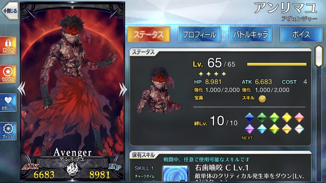 それよかセイバーとかと比べてATKもHPも1000ずつくらい低い点とか、