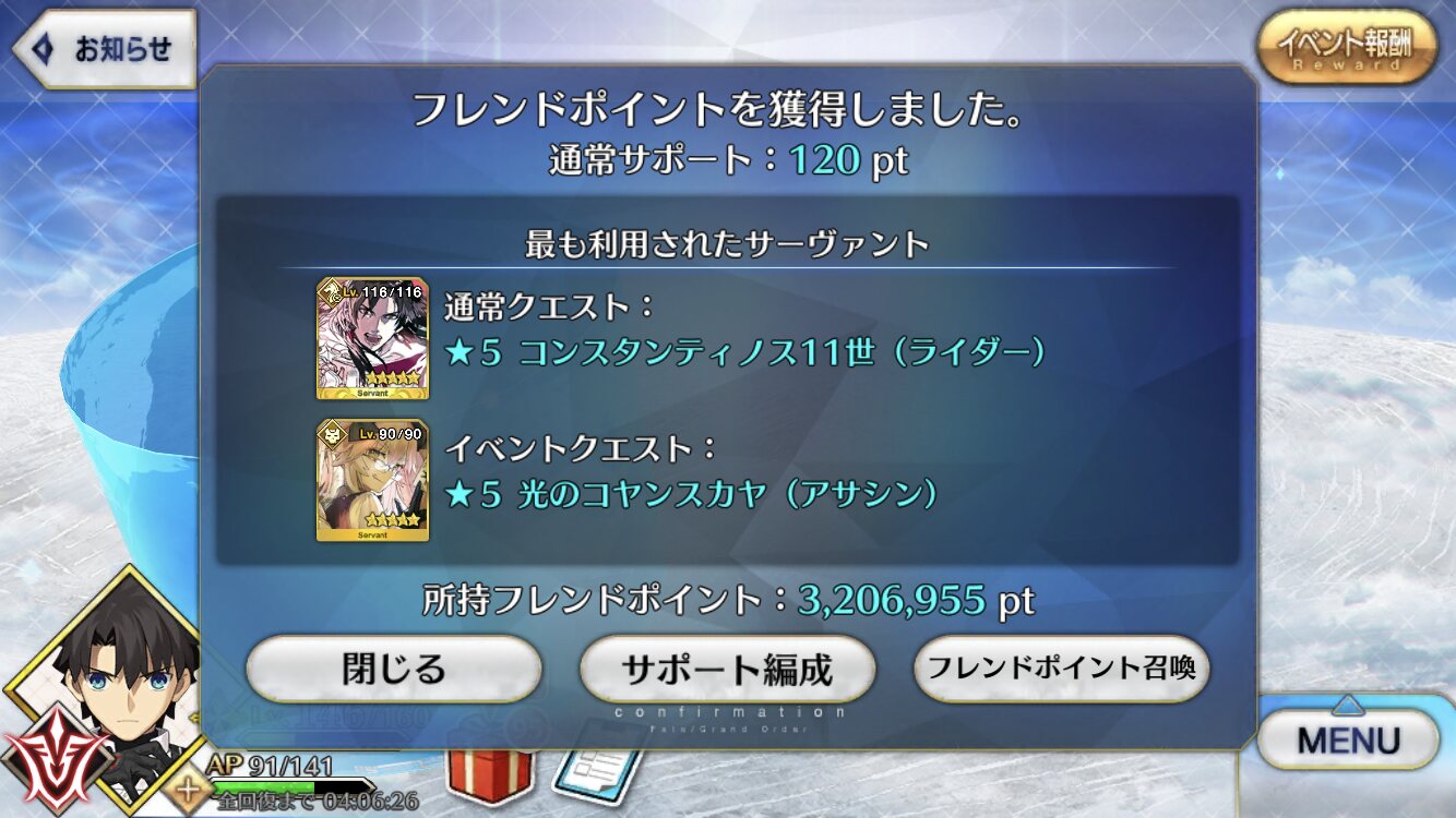 探偵のルーラーには相当狂わされましたね……(現在レベル106)割とマジな話、FGOで姫君にワンチャンありそうなの初代様くらいしかいないよな