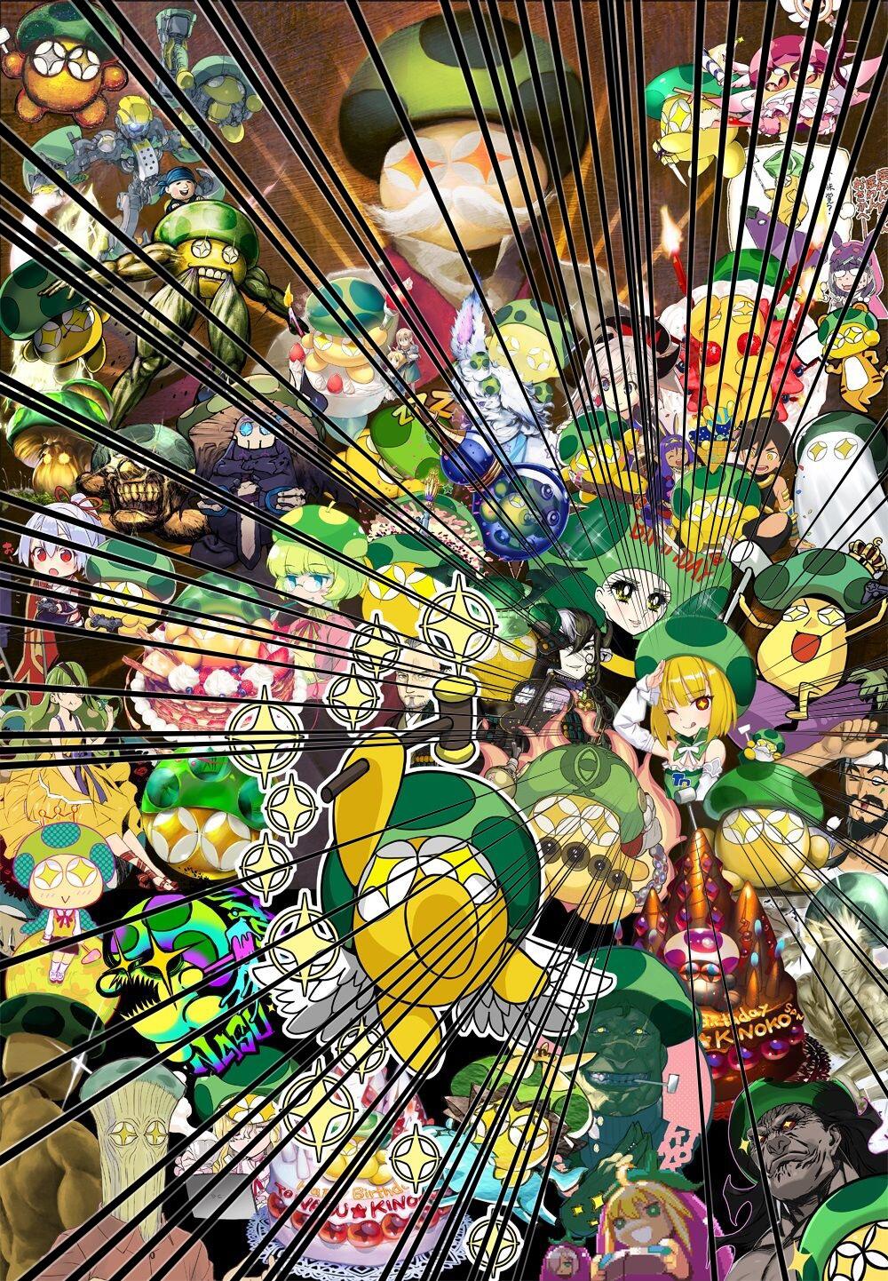 あるときの生放送日にきのこの誕生日と重なったときに発表されたきのこの絵でございます