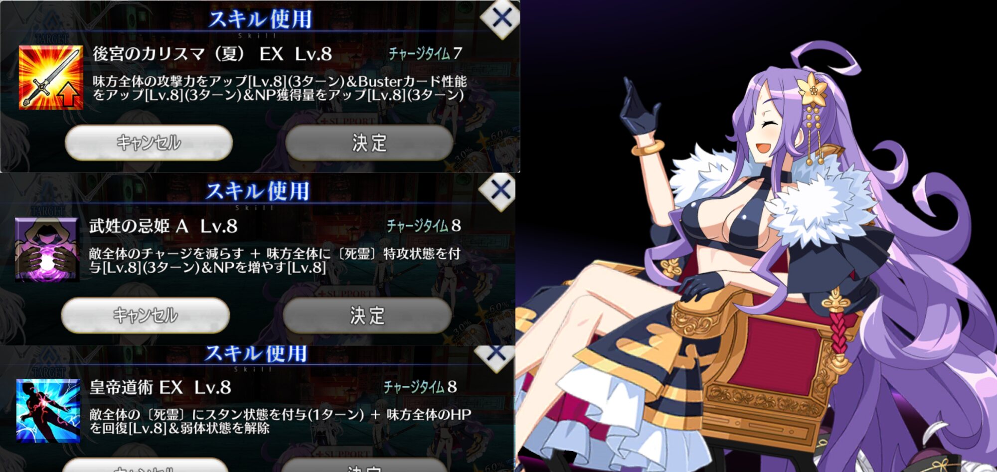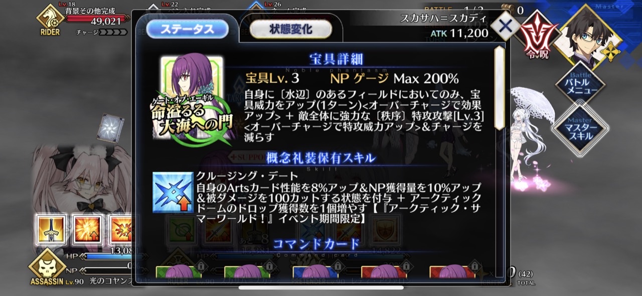 クイック+50とNP+50はそのままに追加のクイックバフと攻バフで痒い所に届いてなかった術スカディの不満点を回収したような形になってる