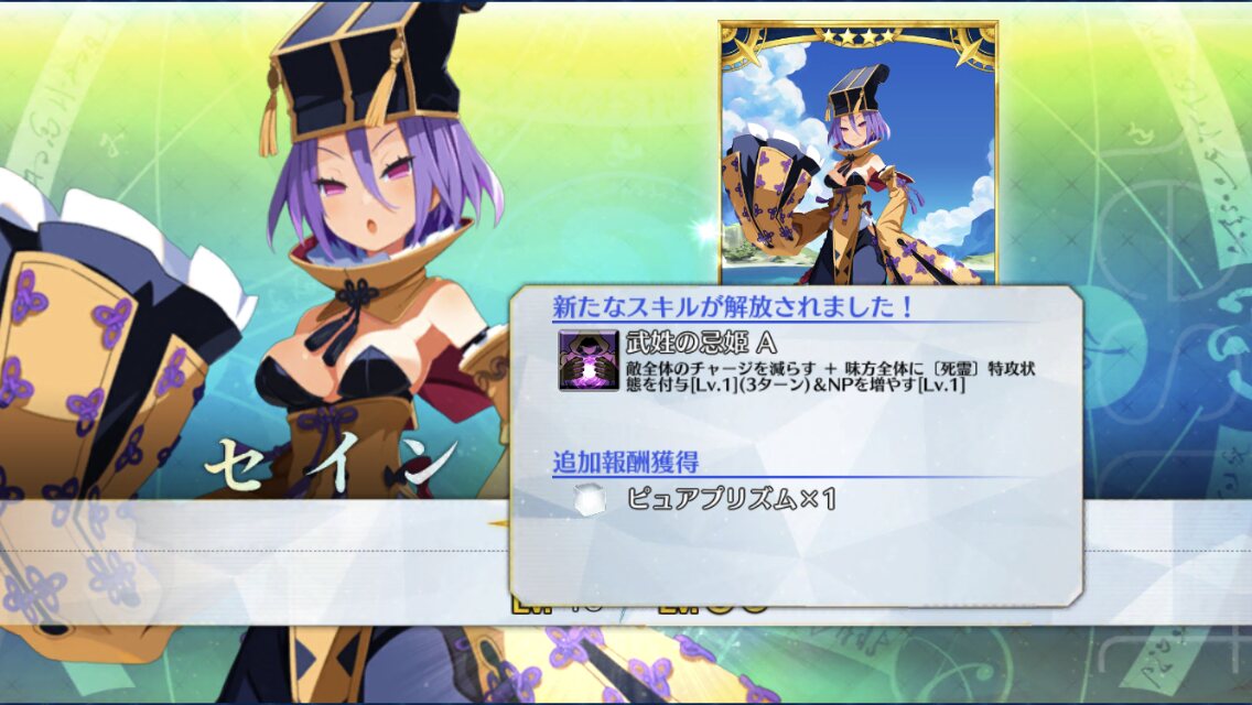 『武姓の忌姫 A』 敵全体のチャージ減少・NP獲得、そして三ターン死霊特攻付与!徐福ちゃんと同じく味方全体の特攻撒きです