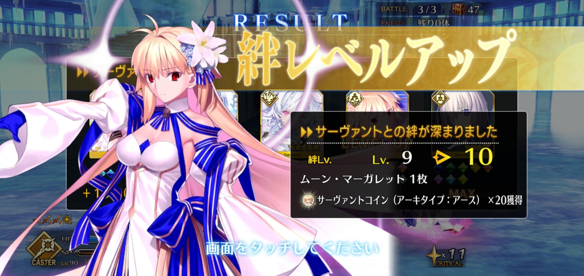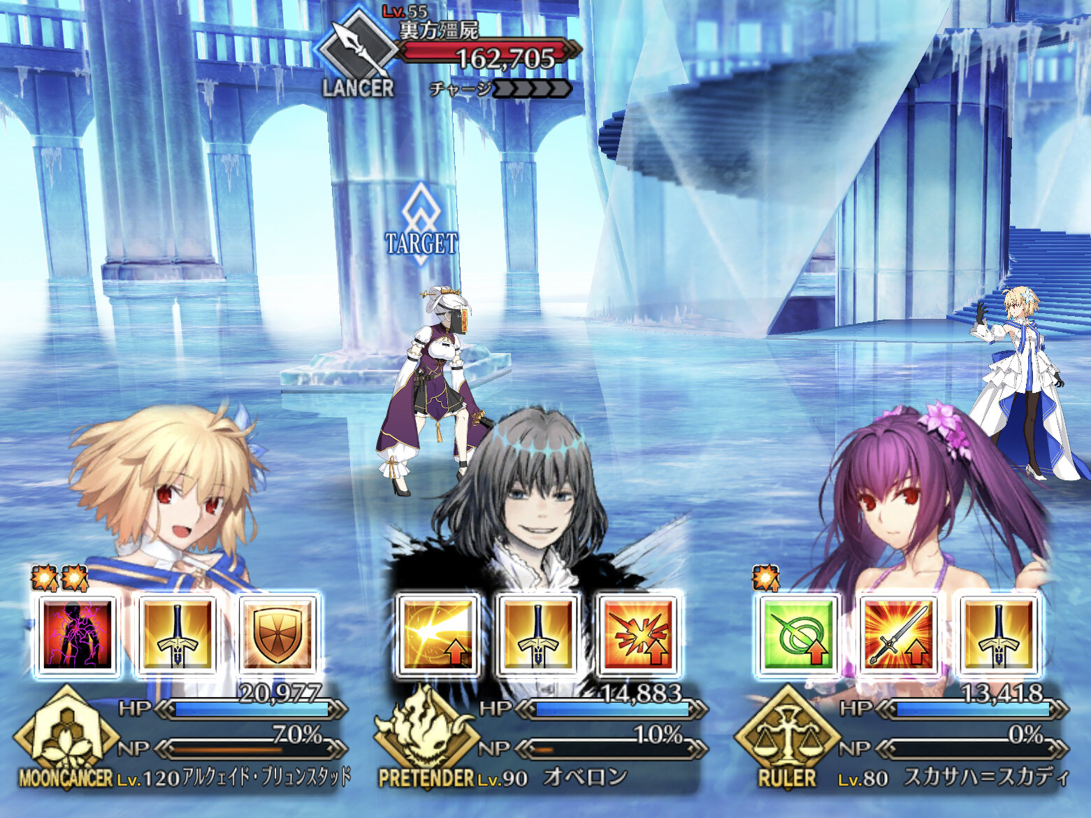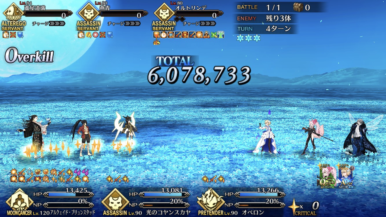3:もう片方のキャストリアのスキル1を使う。キャストリアの宝具か極地バフ等で火力を上げてはじめちゃん宝具。