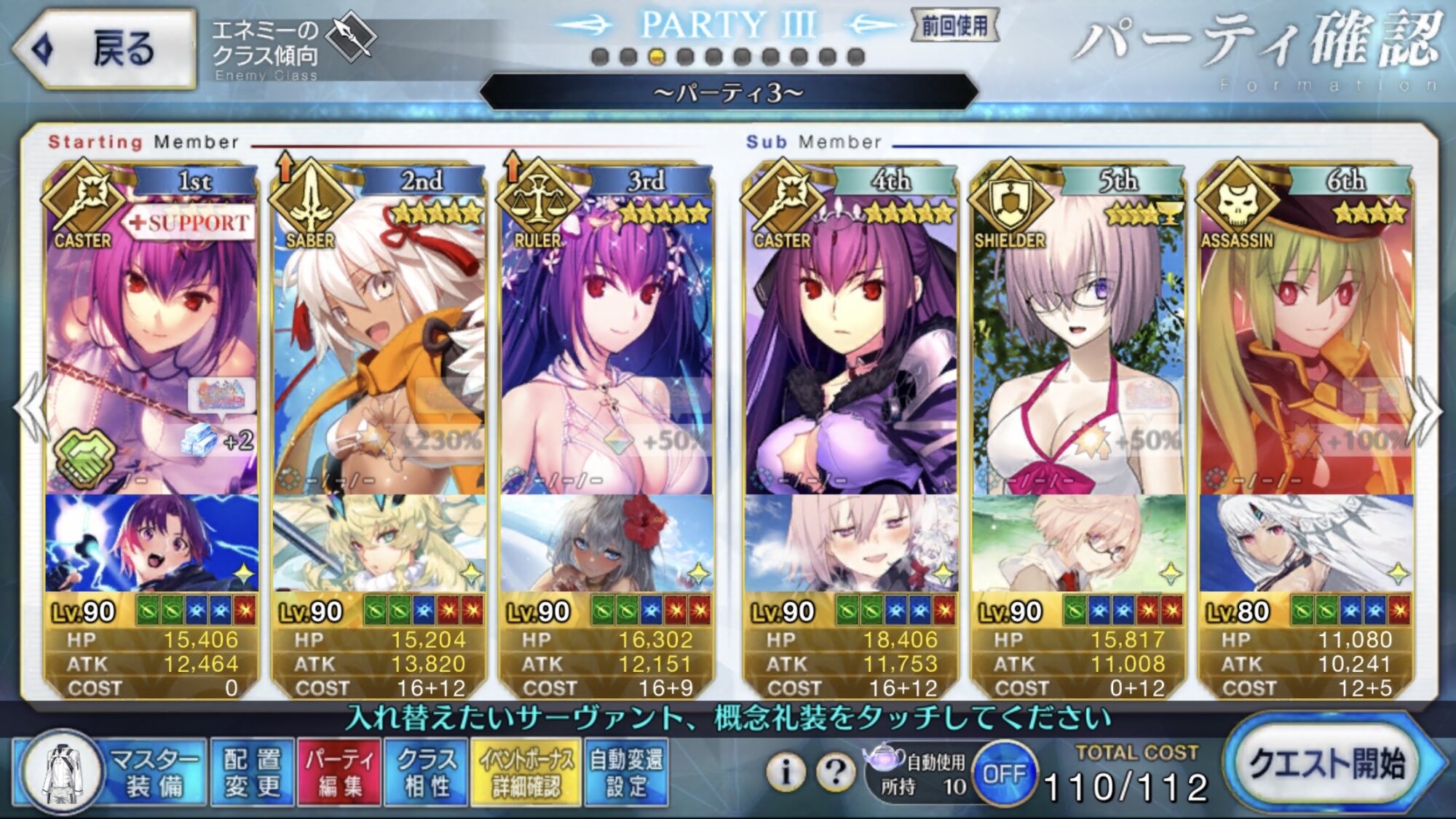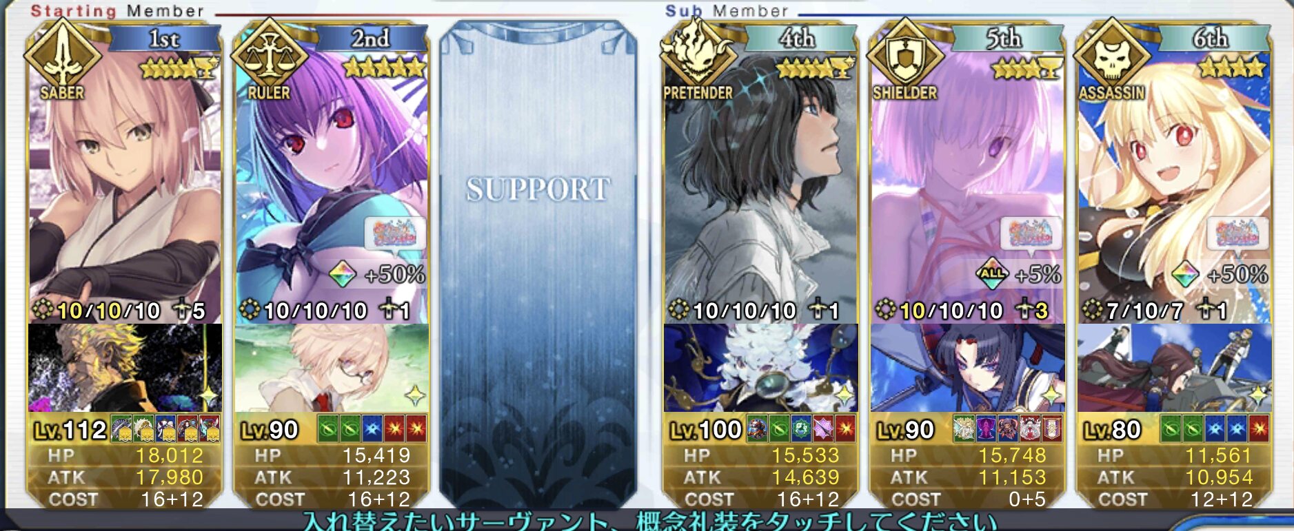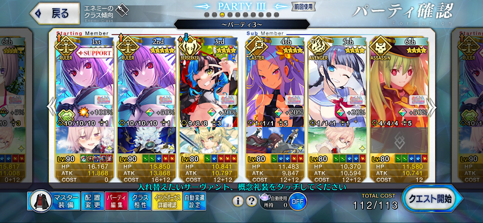 うちのは銀フォウマお栄ちゃん(10/6/6)/素サンタカルナ(1/1/1)なんで、もっとスキル高ければ省略できるとこがあるかもしれない>>698