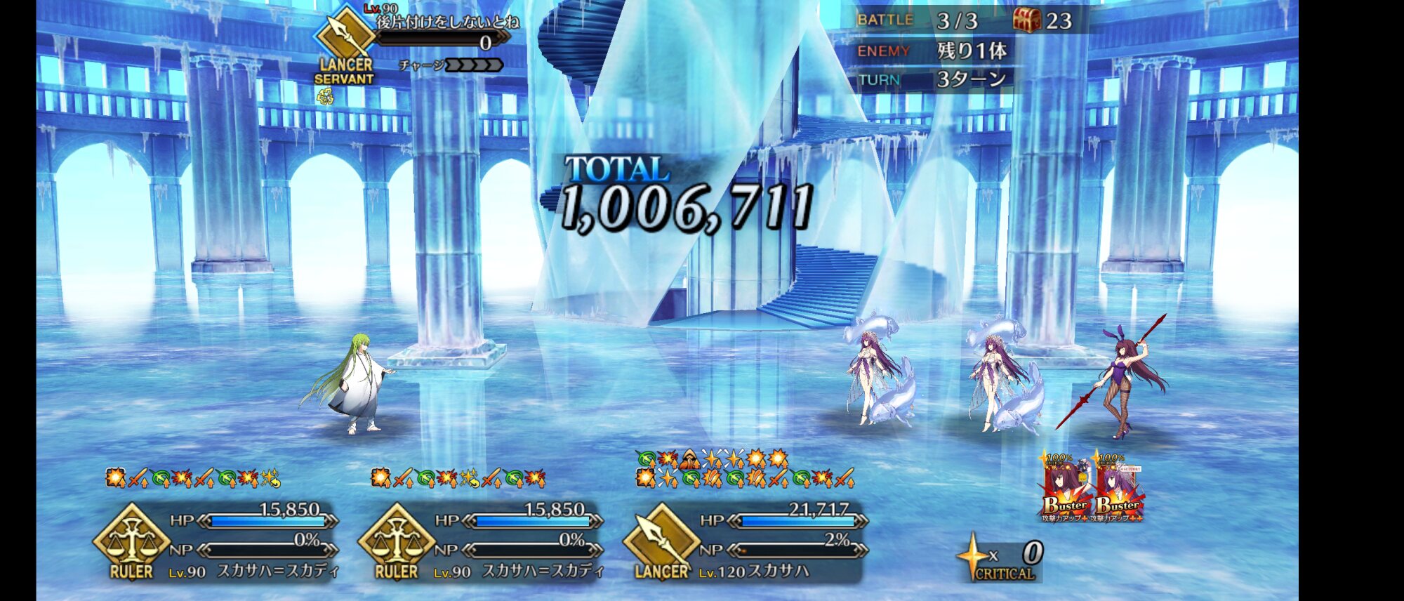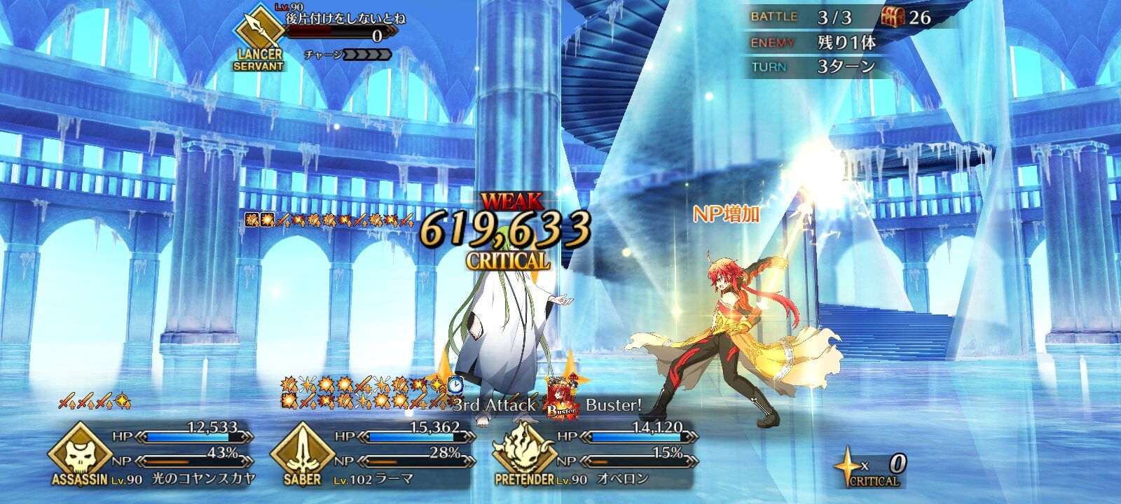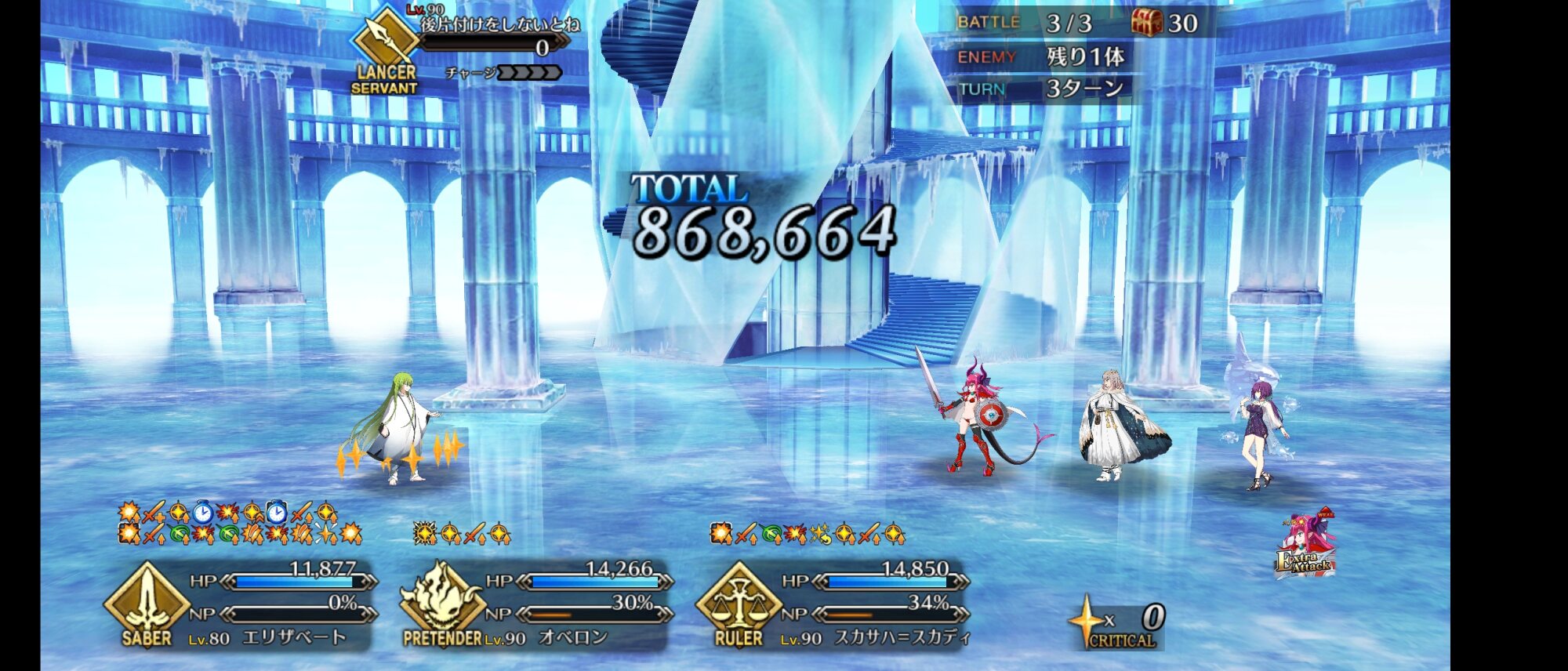 可能であればクリティカル殴りで倒す。(星とNPはスカサハ)