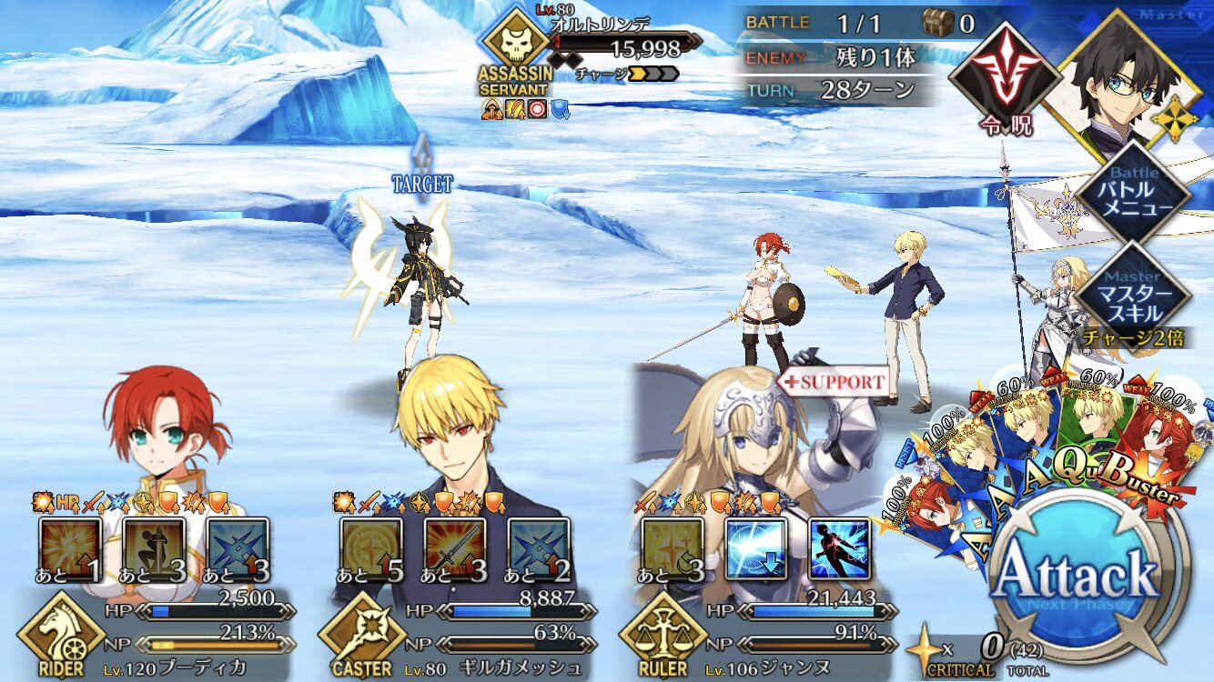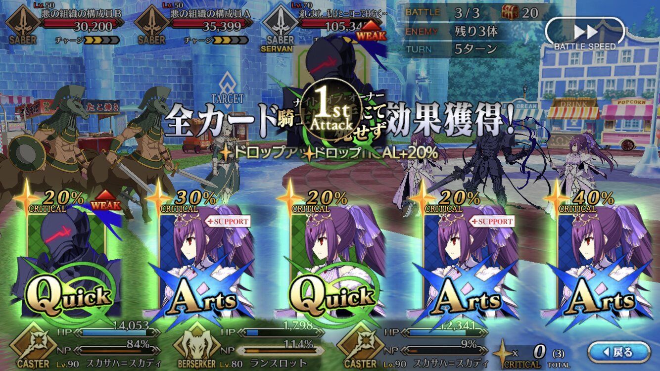 なお、本当にカード運悪いなら(スカディのみとか)最初にスキル使わずにただ殴ればいい。