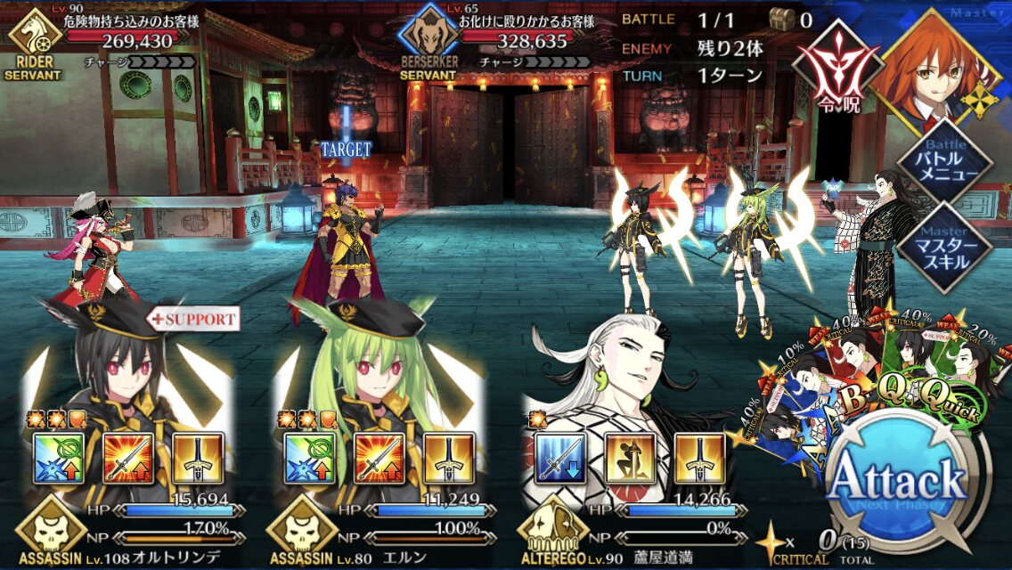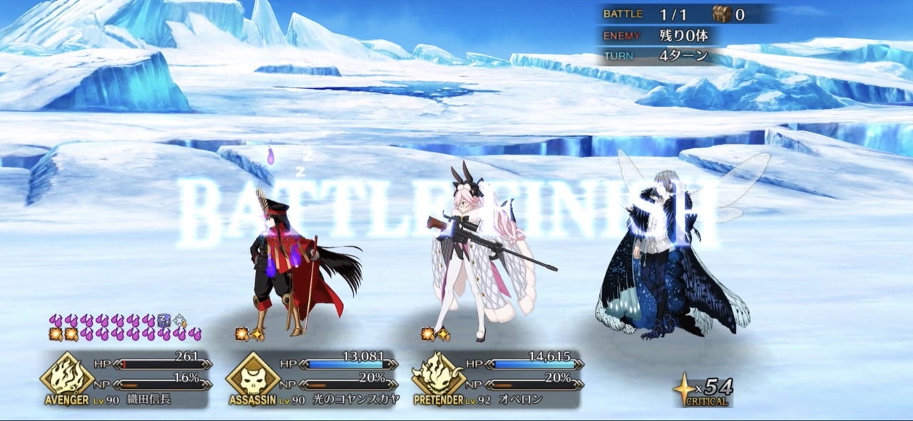 別に1-1-1が増えなくてもボスキラーにはなるし。アーツパで周回しようと思ったら色々と一歩足りずに困ってたけど、Wコヤンと魔王ノッブ&カッツで殴り倒す事で最悪4ターンに収まるようになった・・・