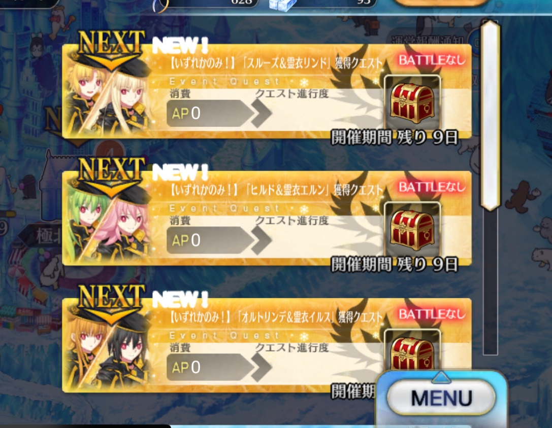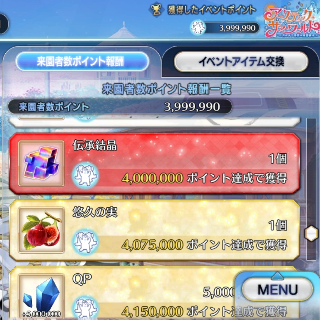 イベント素材を余らせず全て換QPできるとなんか気持ちいい。そしてそれ以降のフリクエに出撃する気力が著しく減退する。