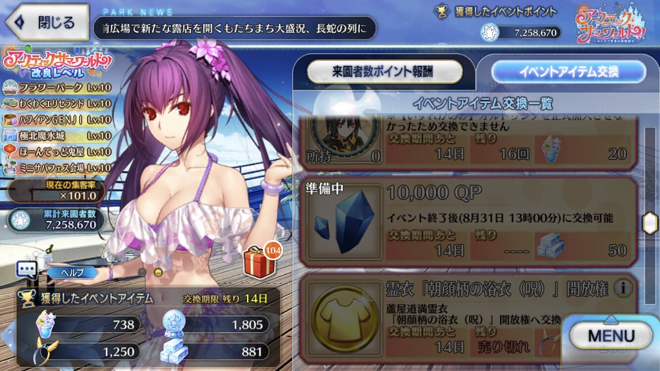 2022年水着イベント「アークティック・サマーワールド!〜カルデア真夏の魔園観光〜」の専用スレッドです。