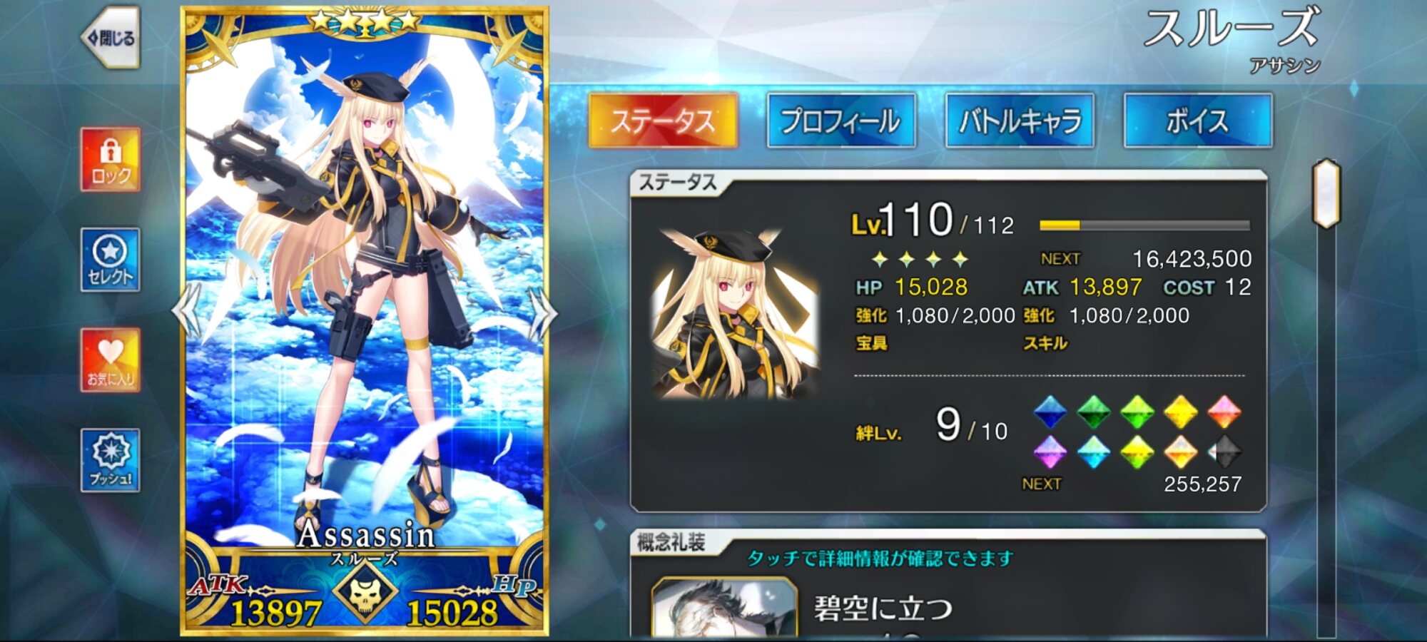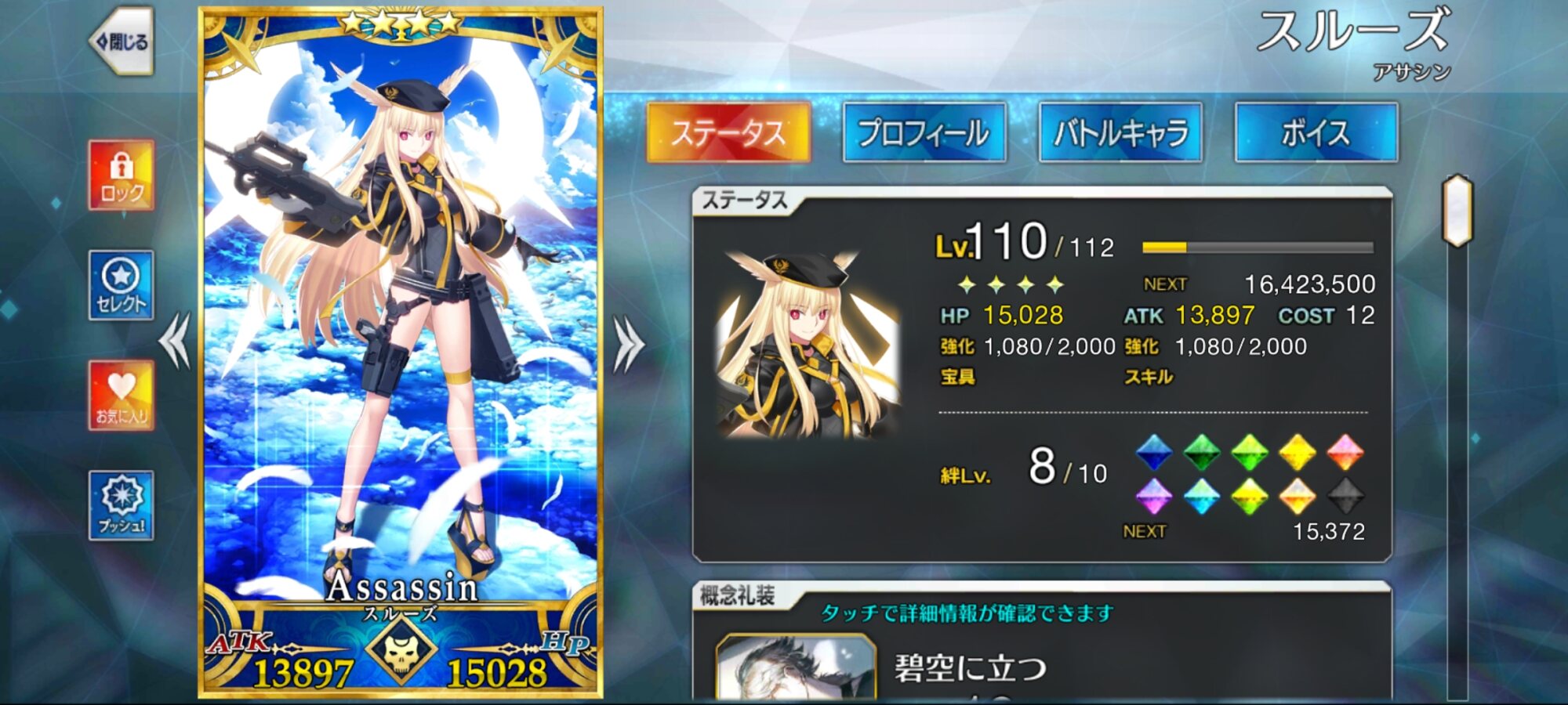 一ちゃんはアペンドスキル2MAX。エリセとレディ・アヴァロンは絆値稼ぎなので無視してよし