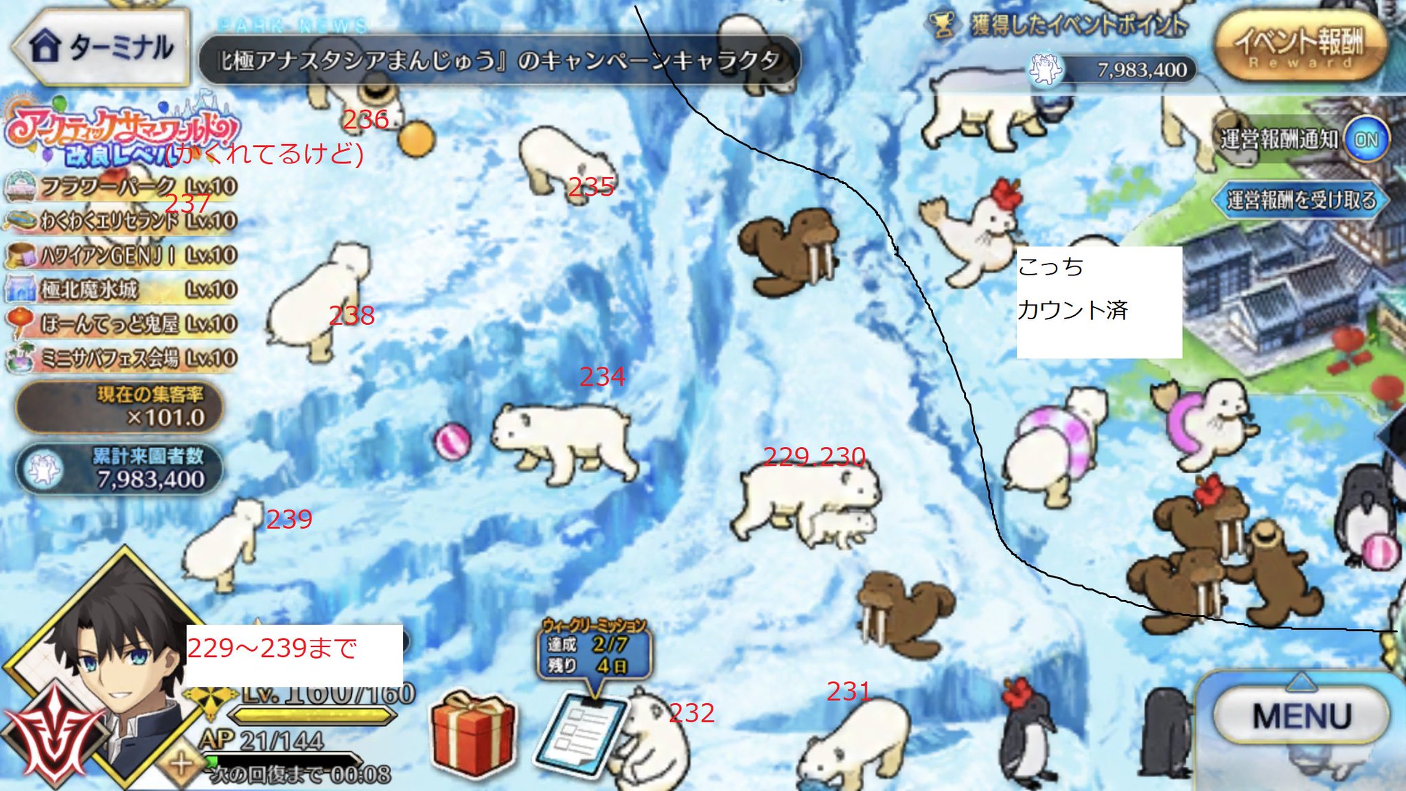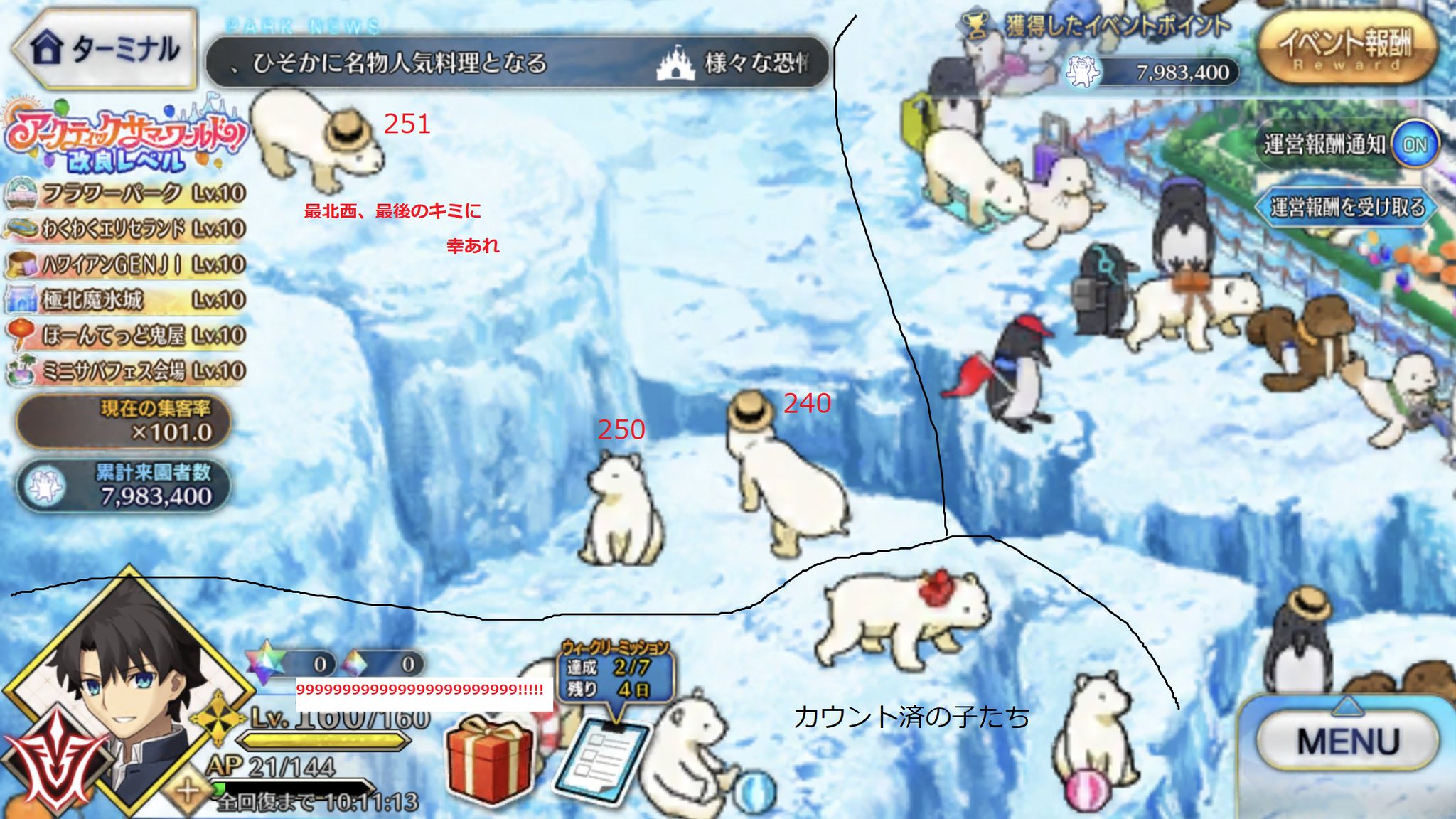 フィールドのシロクマは全部で251頭でしたという誰得報告です