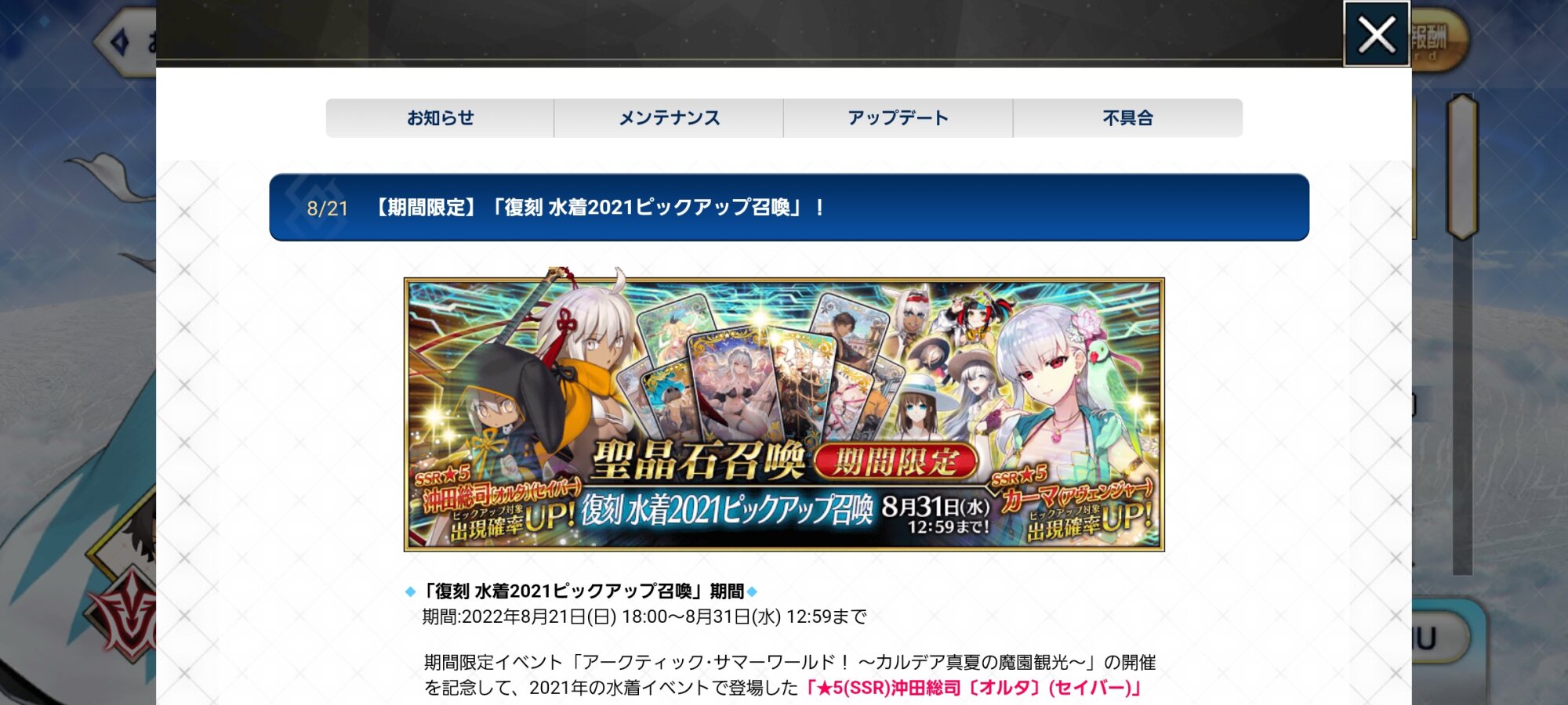 FGO公式HP http://www.fate-go.jp今年水着復刻ないのか?