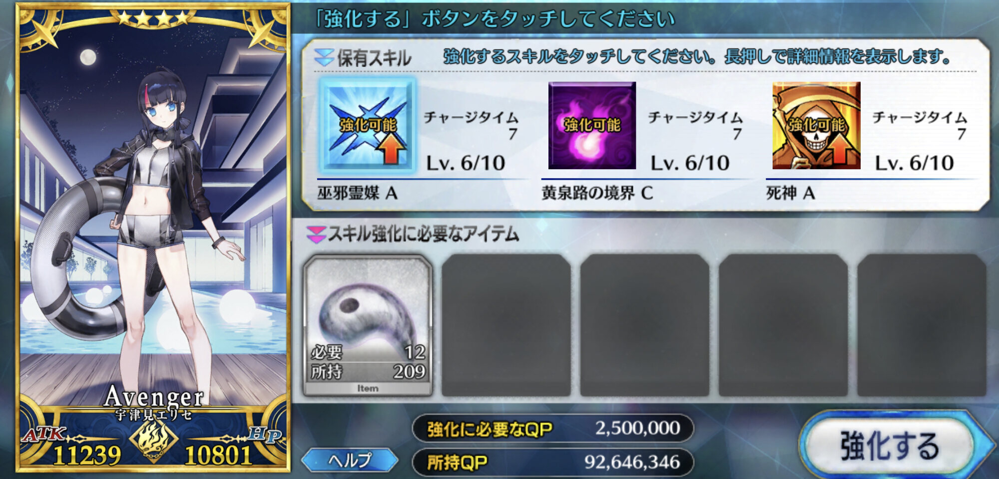 星3なので比較的に沼らないし、マジで育てて損は無い性能なのでというか本気で水着イベいまから周回しないときつそうではある