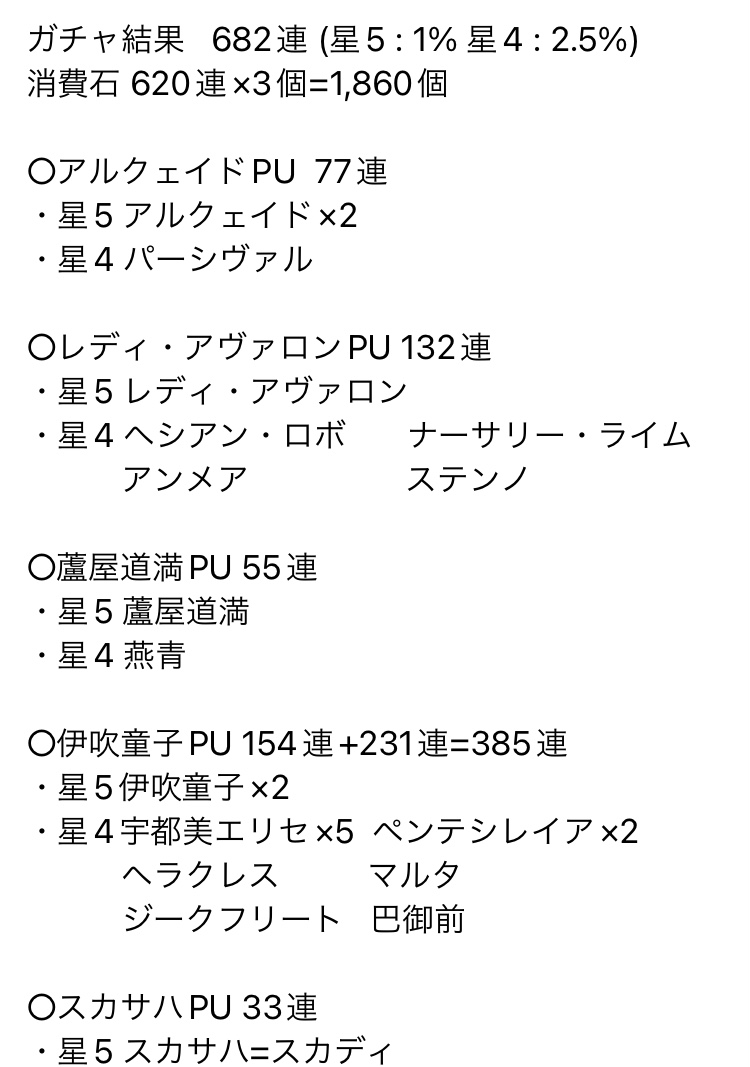 数が多いからな、そもそも……キャストリア! モルガン! 村正! メリュジーヌ! オベロン! のPUが5つ並び立つ……