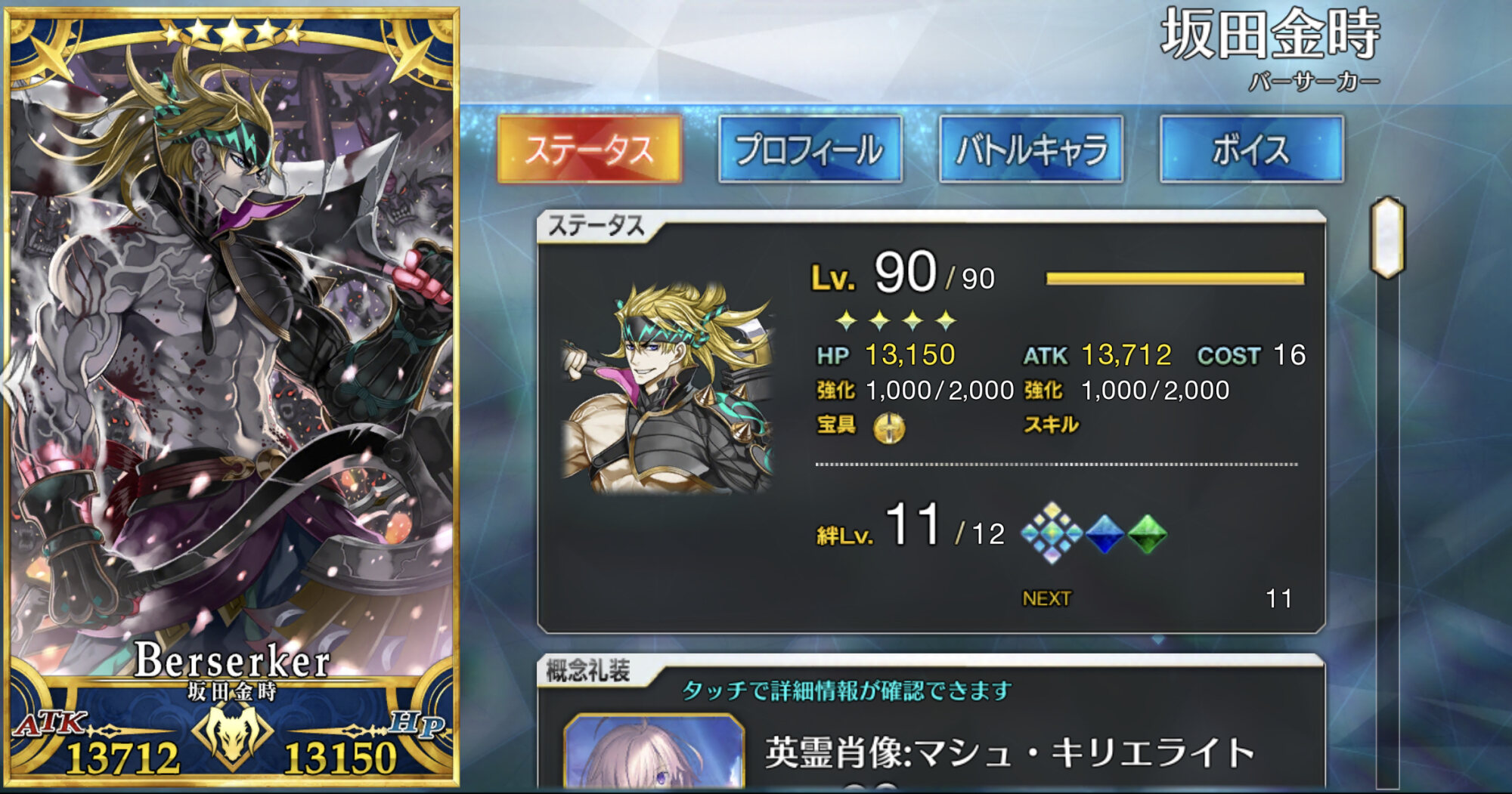 攻撃特化礼装で大体11万