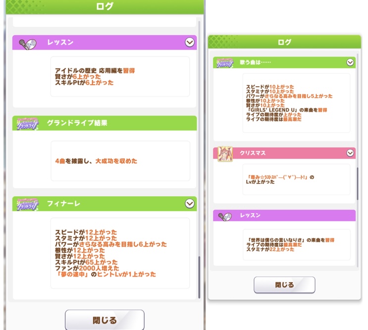 12月前半までに19曲(ライトハロー編成時は18曲)取りましょうね、あと10月後半までに16曲取っておかないと選択肢に応じたスキルも取れないから注意よ>>28