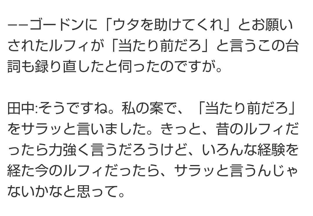 ルフィの「当たり前だ」って言うシーンは真弓さんの案らしいな