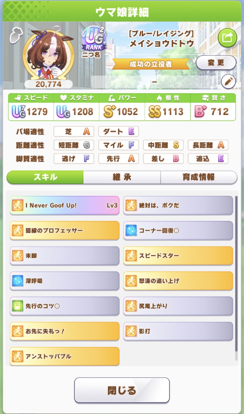 1凸だけど連イベで回復あるテイオー入れてあとは試しに配布ハヤヒデ>>954