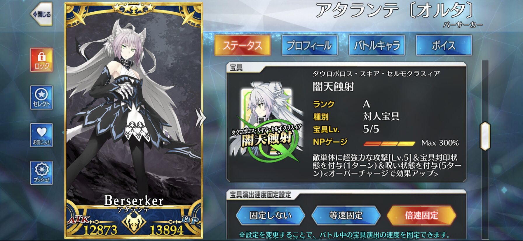 宝具は水辺で宝具威力アップを付与できる秩序特攻全体Q。まさかスカディが攻撃宝具を使ってくるとはね…副次効果は全体へのチャージ減だから遅延にも使えるわよ
