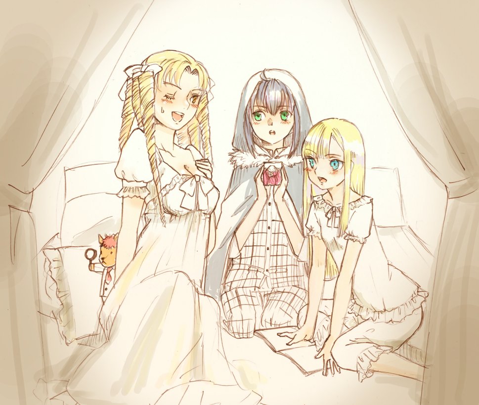 「徹夜しちまった……まくらまくら……(まとめて三人に抱きついて寝る)」>>24