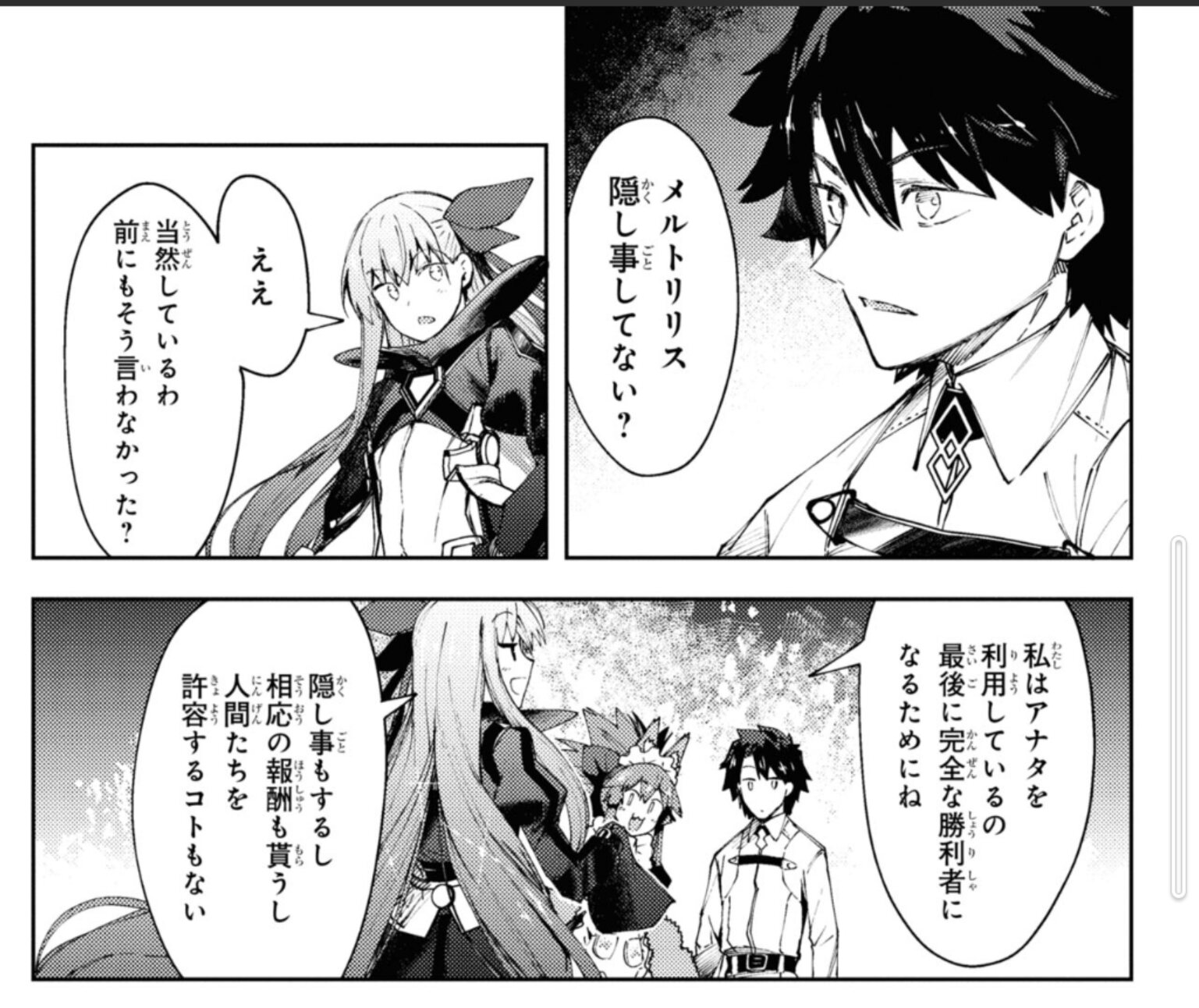 どんな反応するのかしら。「汎人類史の私怖っ」とか思うのかしら。初期の幕間でも結構重要そうな情報が転がってるな……