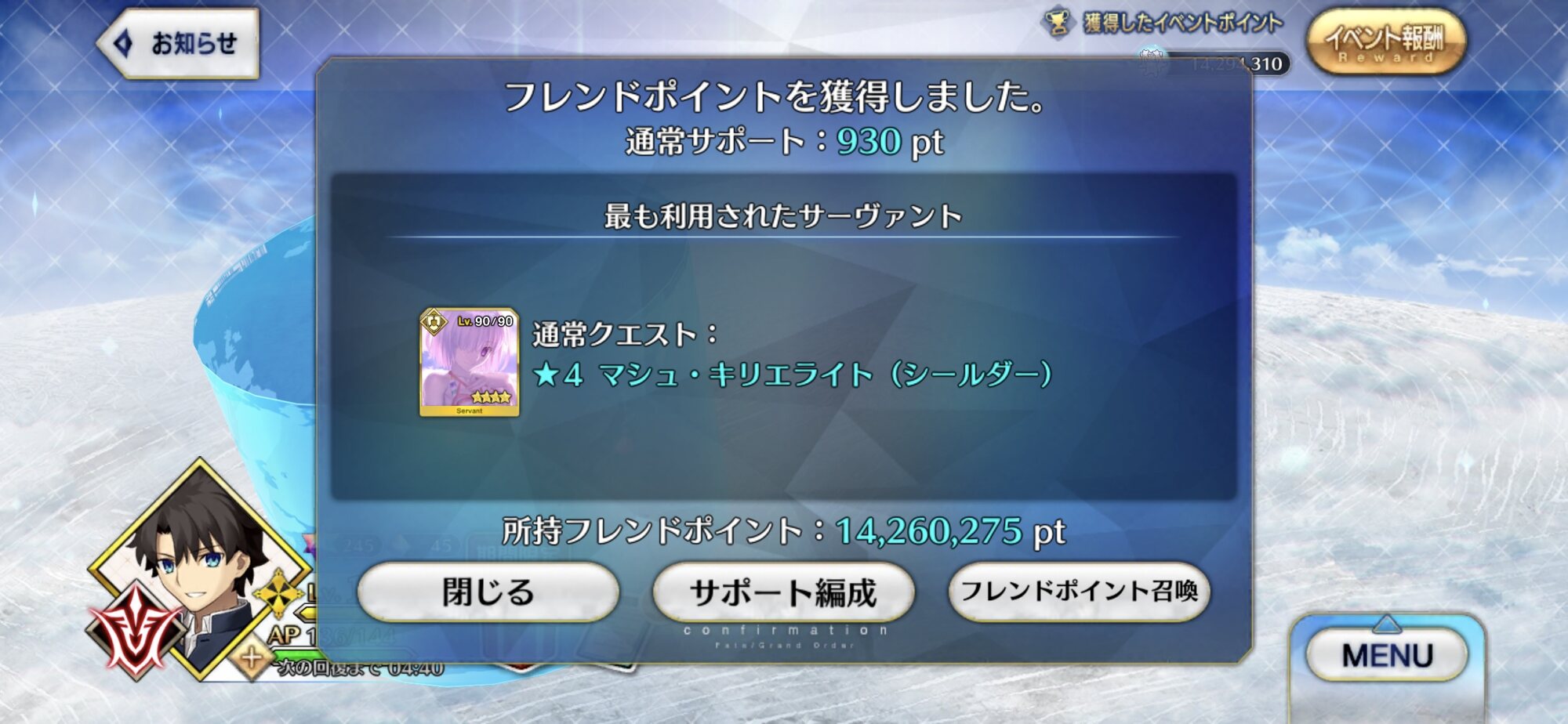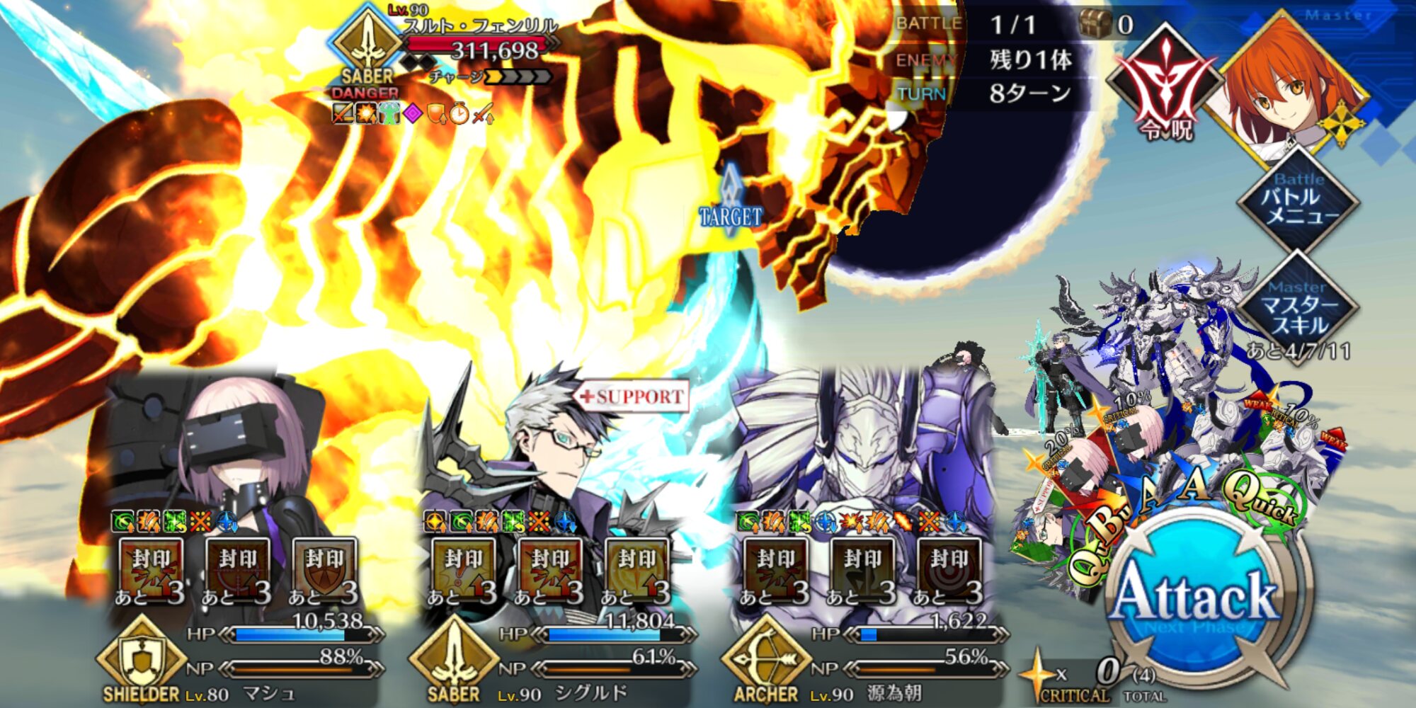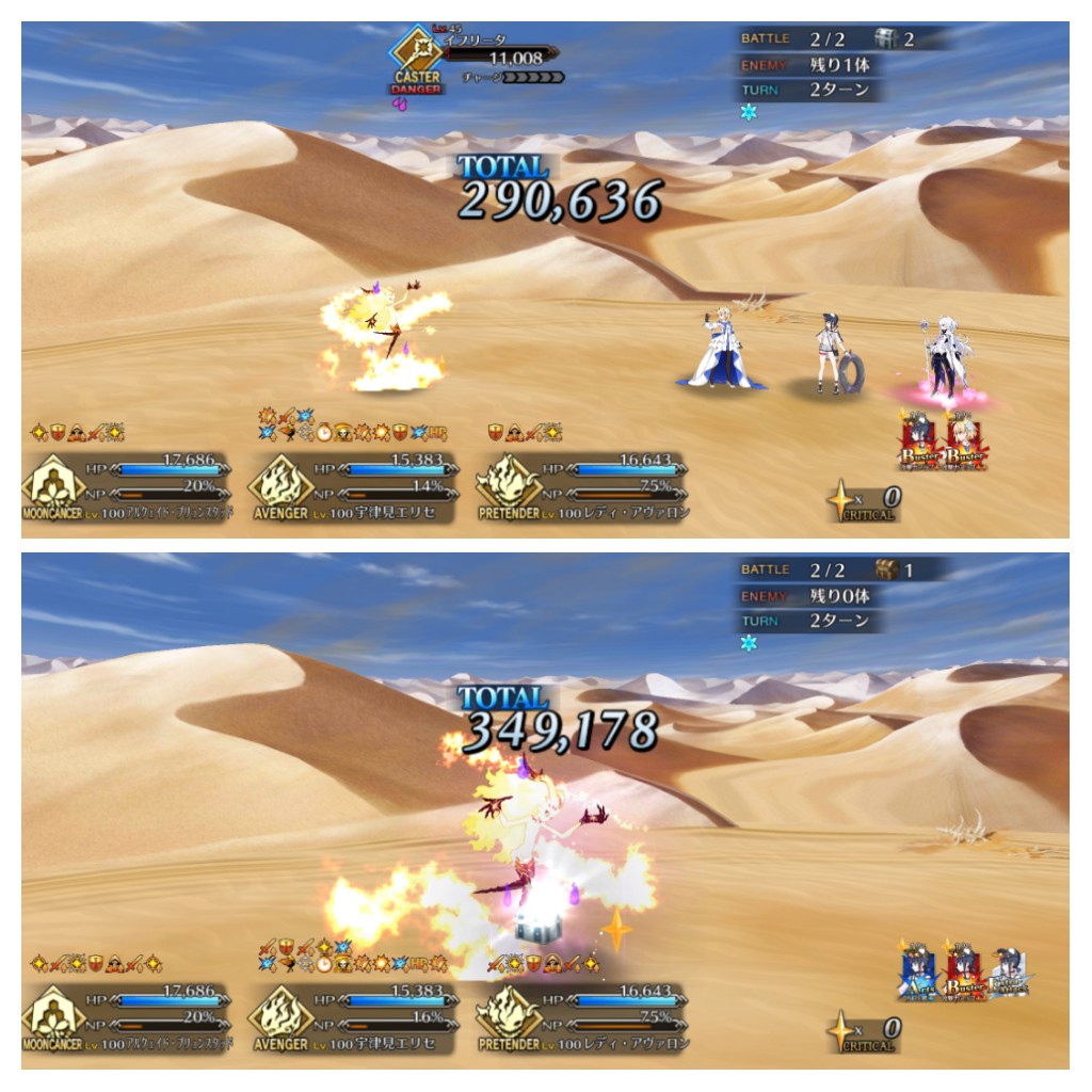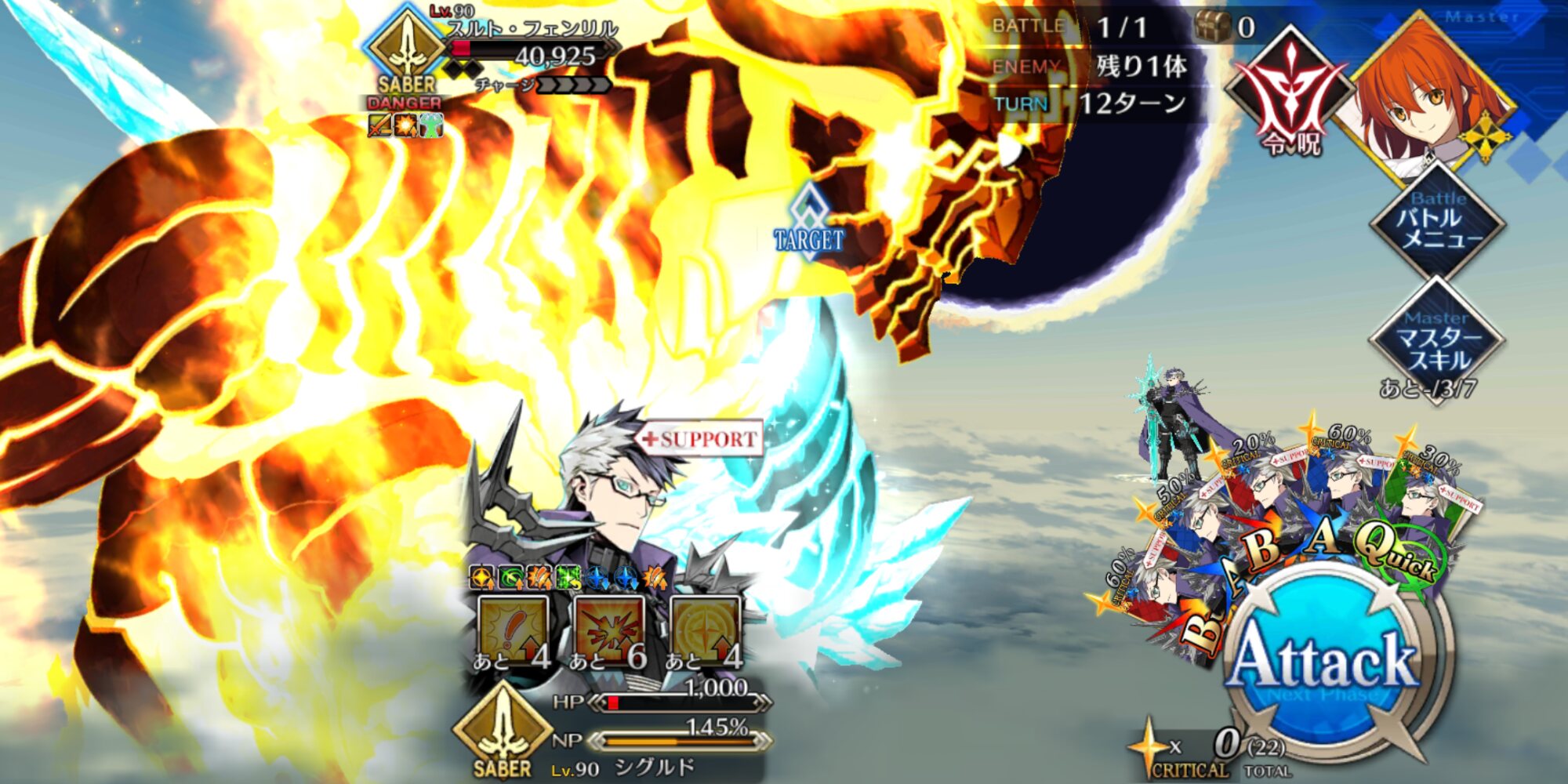 誇っていいさ。僕は急いでたから令呪コンして一回で終わらせたけども。ノーコンは本当に実力がある証拠だとも。スルト戦のシグルドの固定バフは「炎を切り裂いて」だっけ?普通の攻撃力アップだっけ?たまにストーリーのゲストサポは洒落た名前の固定バフデバフ持ってるよね