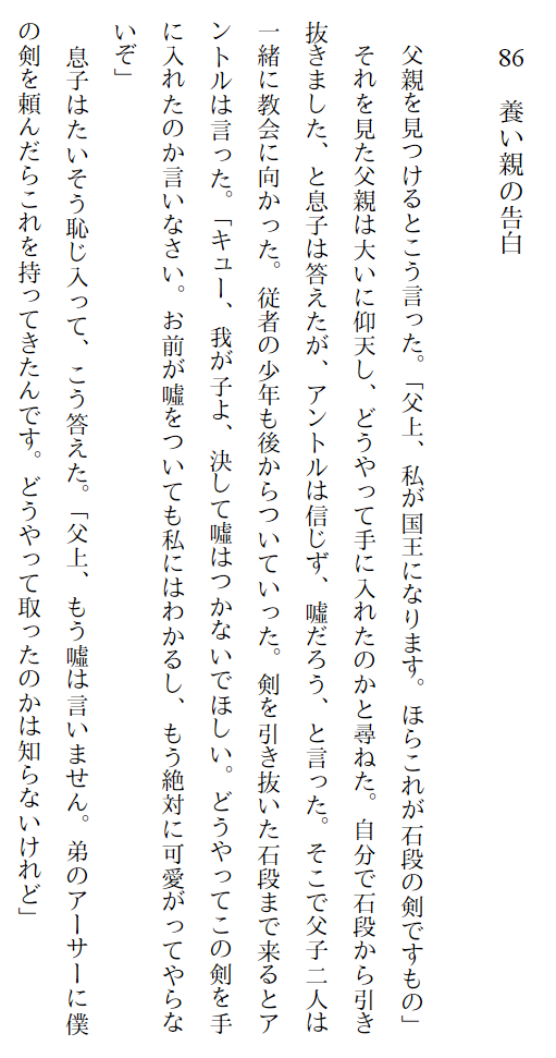 ちなみに自分はサトクリフのアーサー王伝説を読んでます……物語を楽しみたい人におすすめ、ってされてたので。