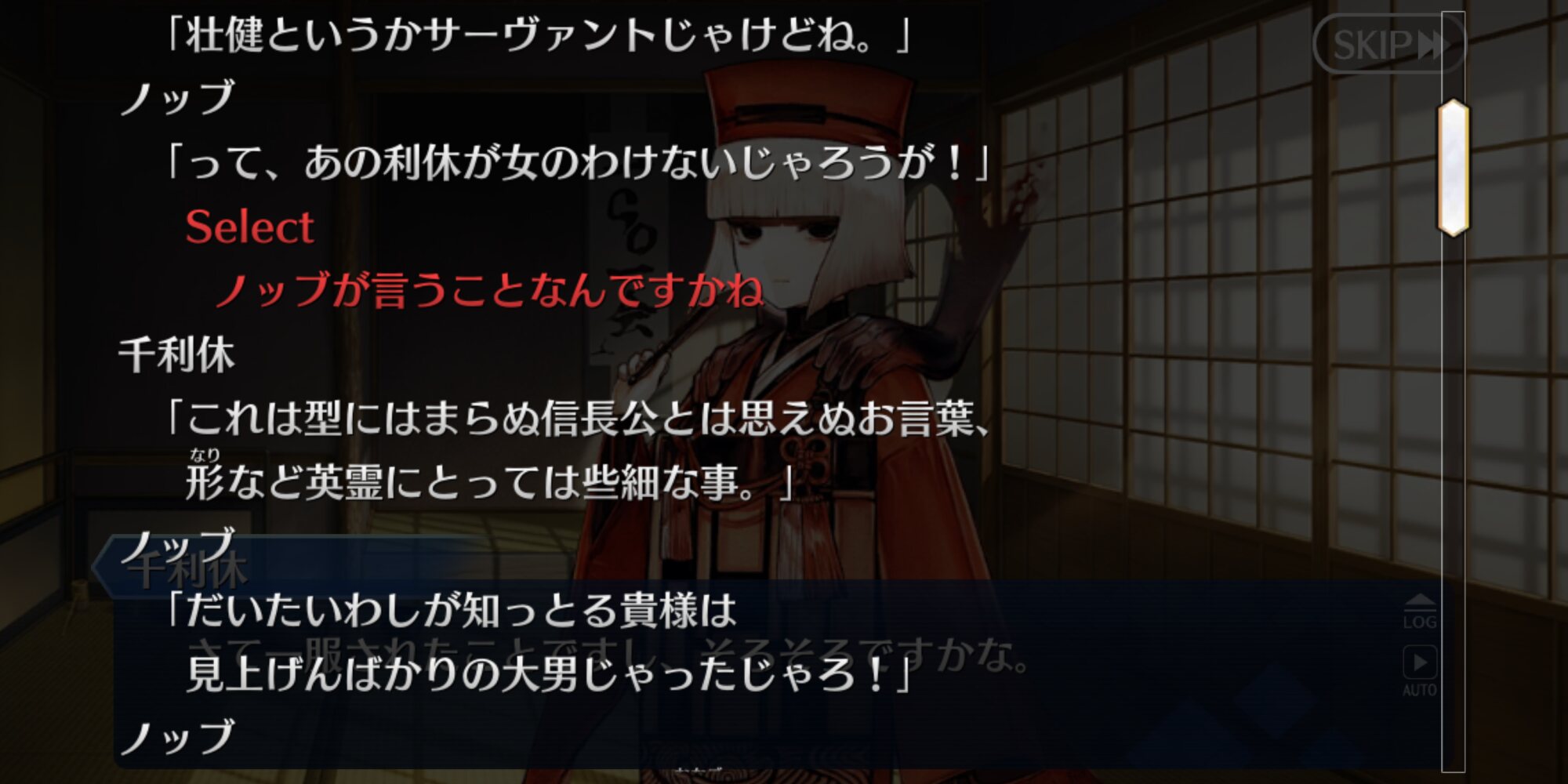 さらっと利休殺.せ命令とか。さっきまであいつには恩あるからなあ、からやっぱやめ殺.すわとかのナチュラルにキルに切り替えるのこえーよ!ノッブは三成の記憶がない?秀吉が関係するならわかるはずだけど