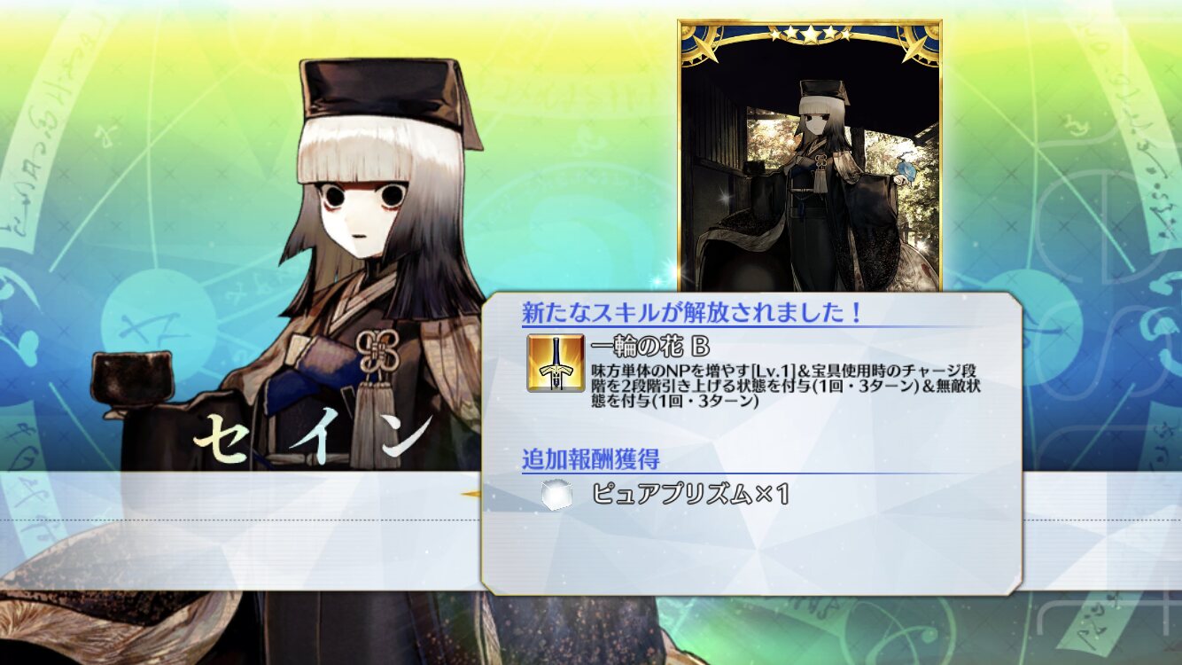 その方は安倍晴明辺りと共に2.5部辺りの新平安京イベントで来てほしいわ。新邪馬台国のロゴ、綺麗に黄色と紫で分かれてるんだよな