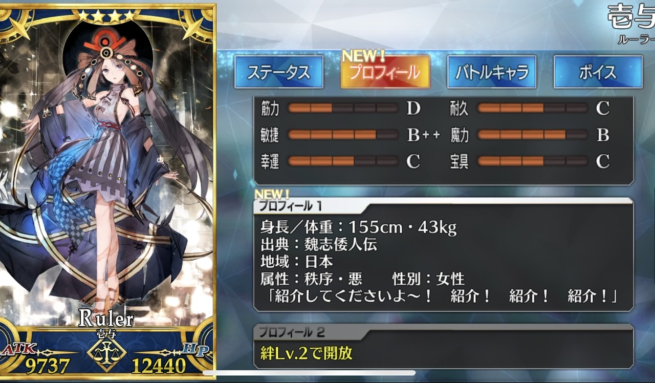 婦長みたいなもんよねぇ。仮加入でもいいので早く壱与ちゃんを迎えたいですね!!(せっかち)
