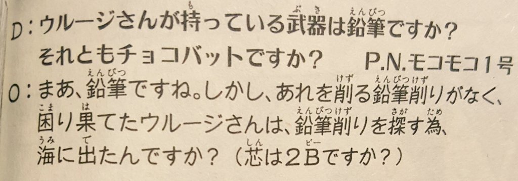 地の文的には、ギルの宝物庫よろしく一振り一振りがそれぞれ違う名剣だから、確かにまぁキレる気持ちはわかるワンピ最新話よんでてふと思い出したんだけど、ウルージさん今何処で何をやっているんだろうか?