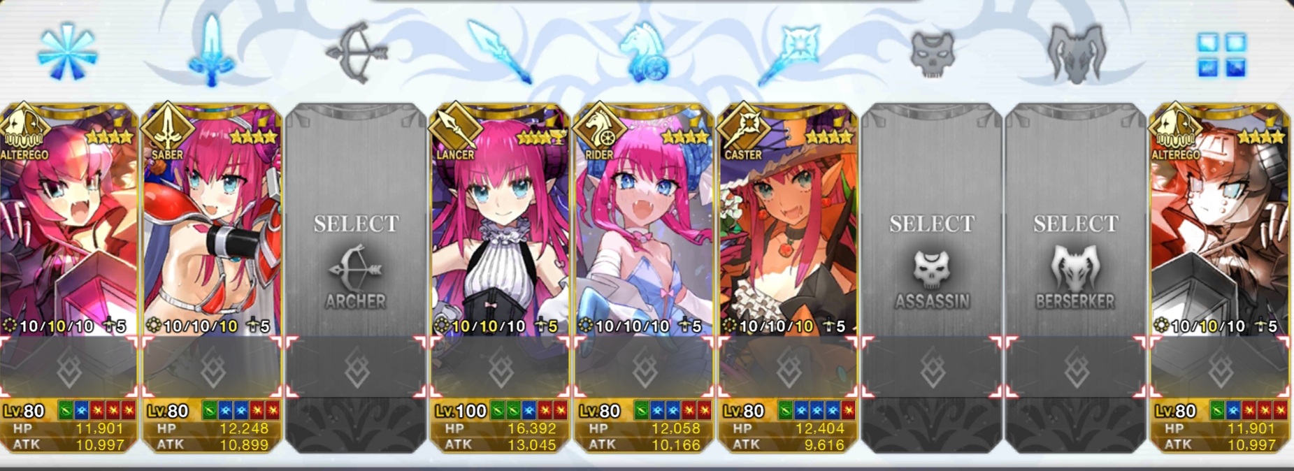 他の専門クラス4種はまだ恒常の星4層が期待できる、バーサーカーとエクストラクラスもかなり回収重要度高いけど汎用クラスだからある意味別腹