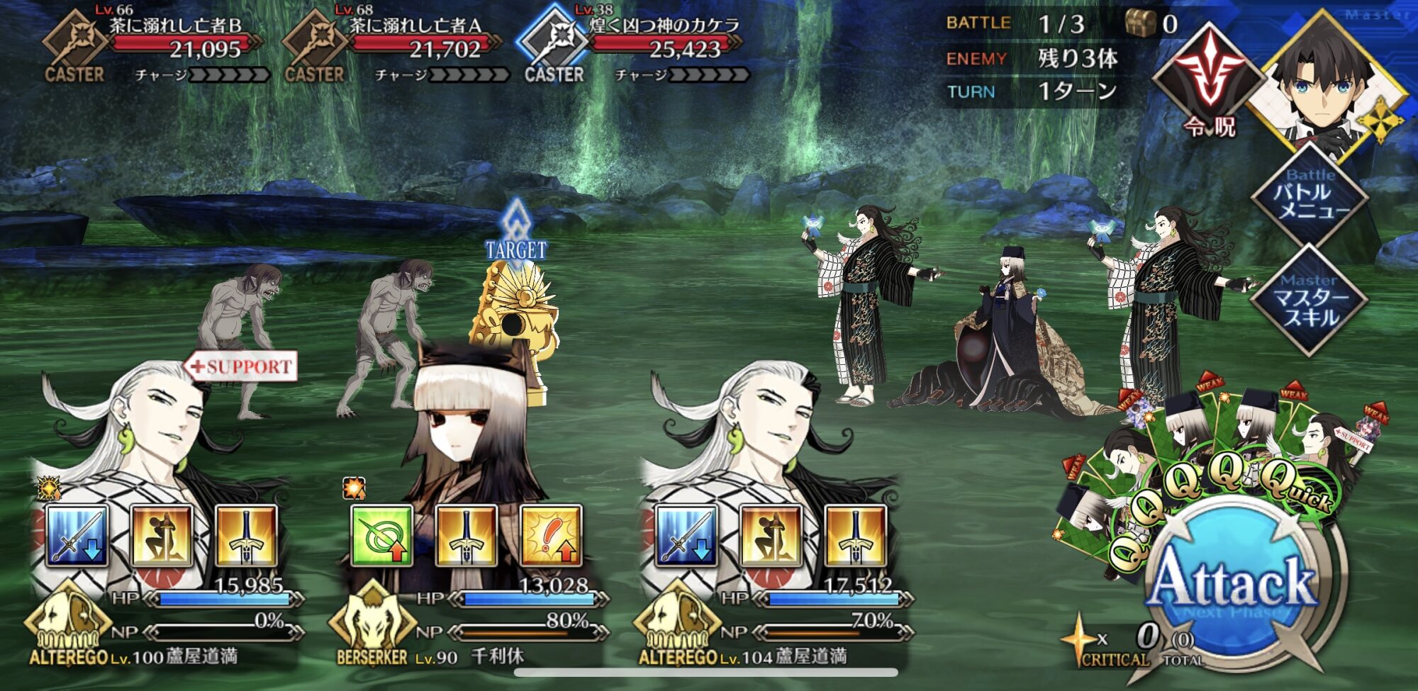 3臨声色変わるみたいだし利休チャレンジしようかしら玉藻「しかし、他に場所が無いのでこの洞窟を茶会会場としましたが、この陰気でジメッとした暗さと狭さ、あの黒歴史を思い出しますわねえ。まあ、全部あの文字通りのク.ソッタレバカ弟のせいですが……ってホワット!?いきなり洞窟に緑の液体が滝のようにガボゴボボ抹茶ゴボ!?」