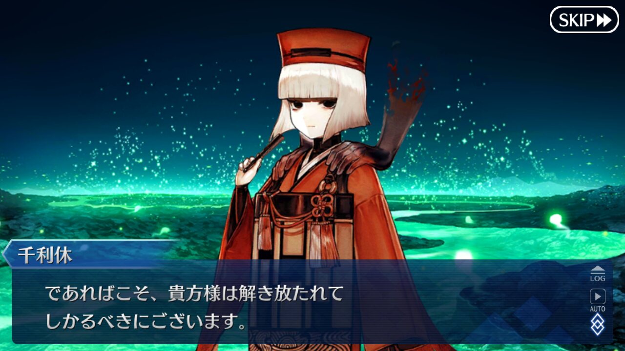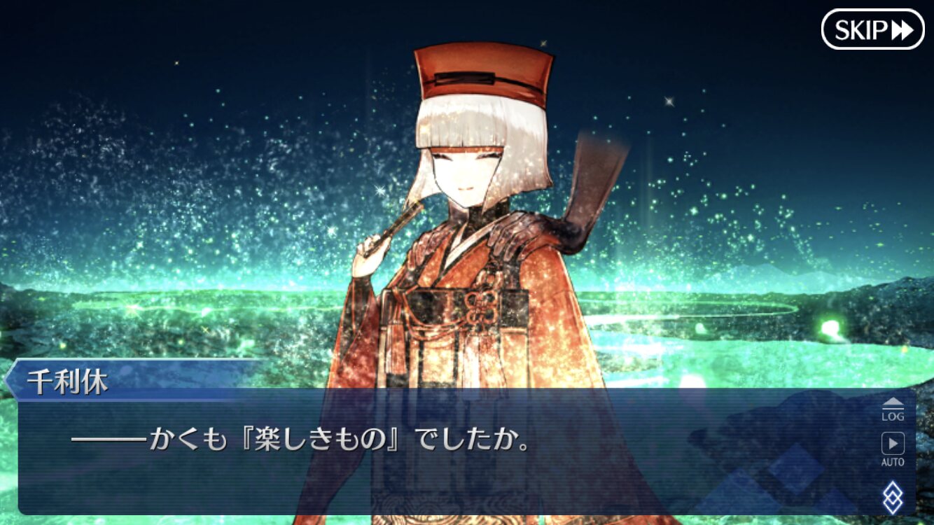 いいよね…最後はぐだが直接利休と対峙し、お茶と問答にて決着…と。激戦のあとに本当の決着を静かにつけるのはかなり好みの展開。