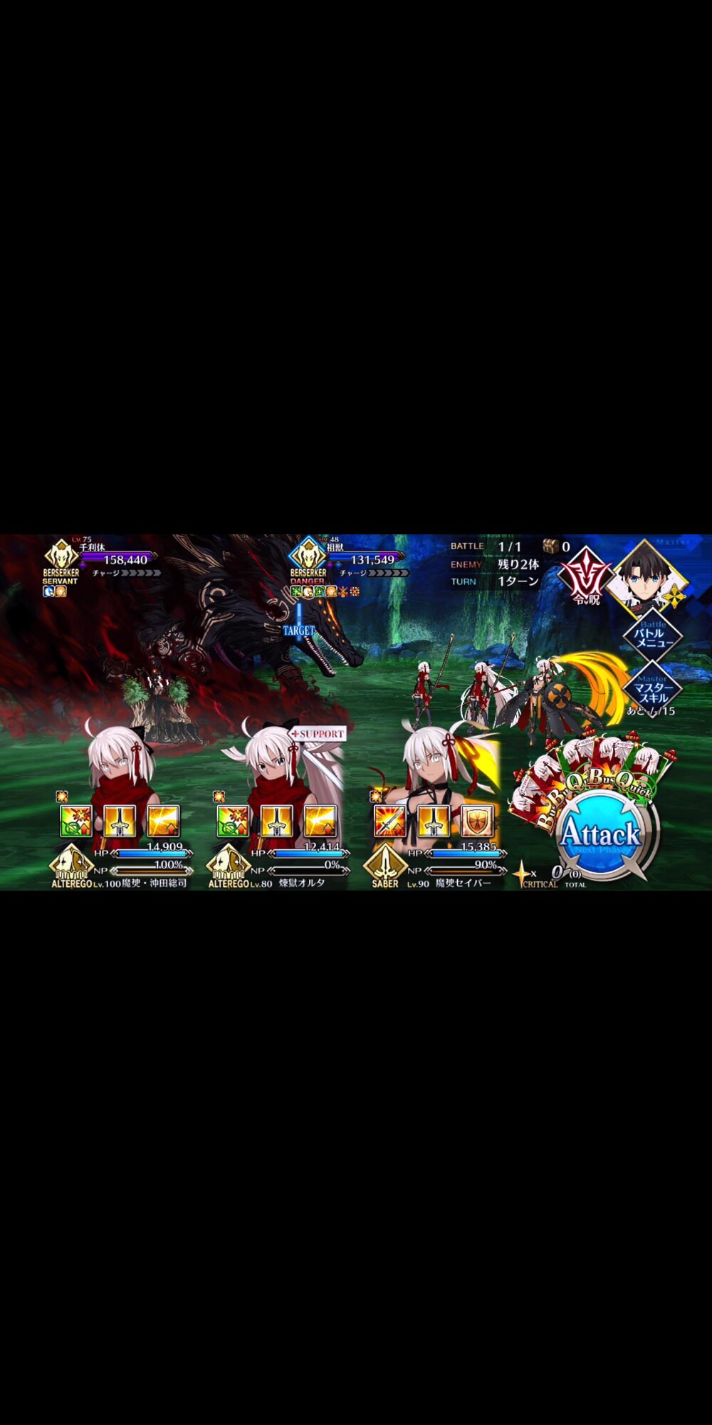 ツングースカでマシュのブラックバレル使用時に、ハベにゃんが宝具で援護してくれるのが(使うのが宝具って意味なら)初かな?今終わったんだけど、途中心臓止まったんじゃけど!?