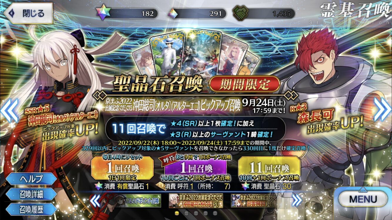 (某ぐだぐだイベ)とか(復刻予定のぐだぐだイベ)とか(インタールードか復刻だろうイベント)とかノベルゲーしてるの色々あるからなあ>>859