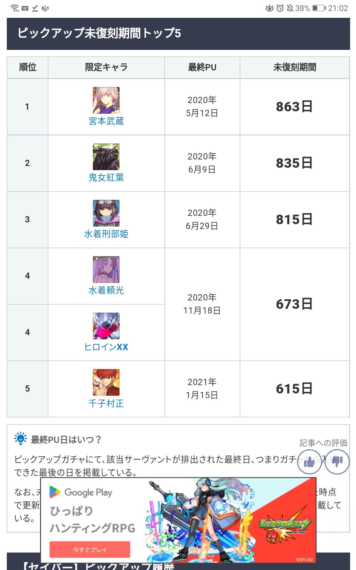 ①現在、残り31体。増えるなら福袋か配布か恒常の低レアのみになるだろう