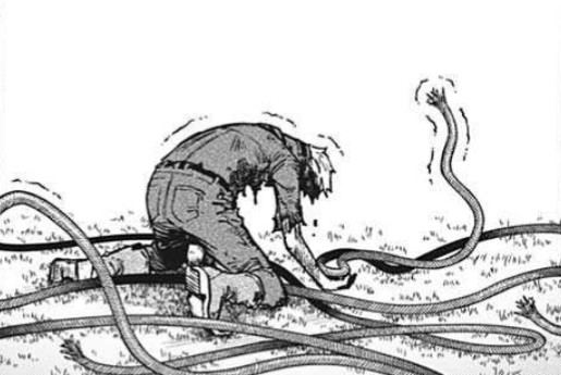 鉈で顔面をグチャグチャになるまで破壊されていき、介錯人は超人的身体能力で戦場へ向かう…