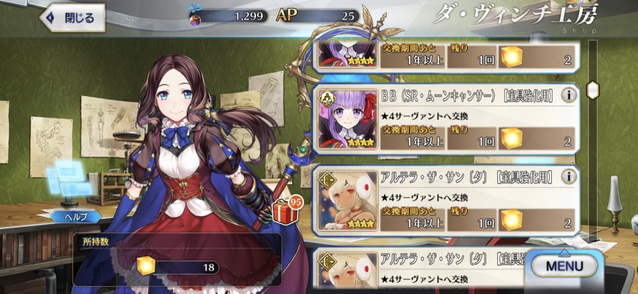 正確に言うとレアプリ全然足りなかった……ランチタイムとかモナリザ欲しかったしあきらめざるを得なかった……結局槍パイセン復刻まで待つ羽目になったわ……>>47