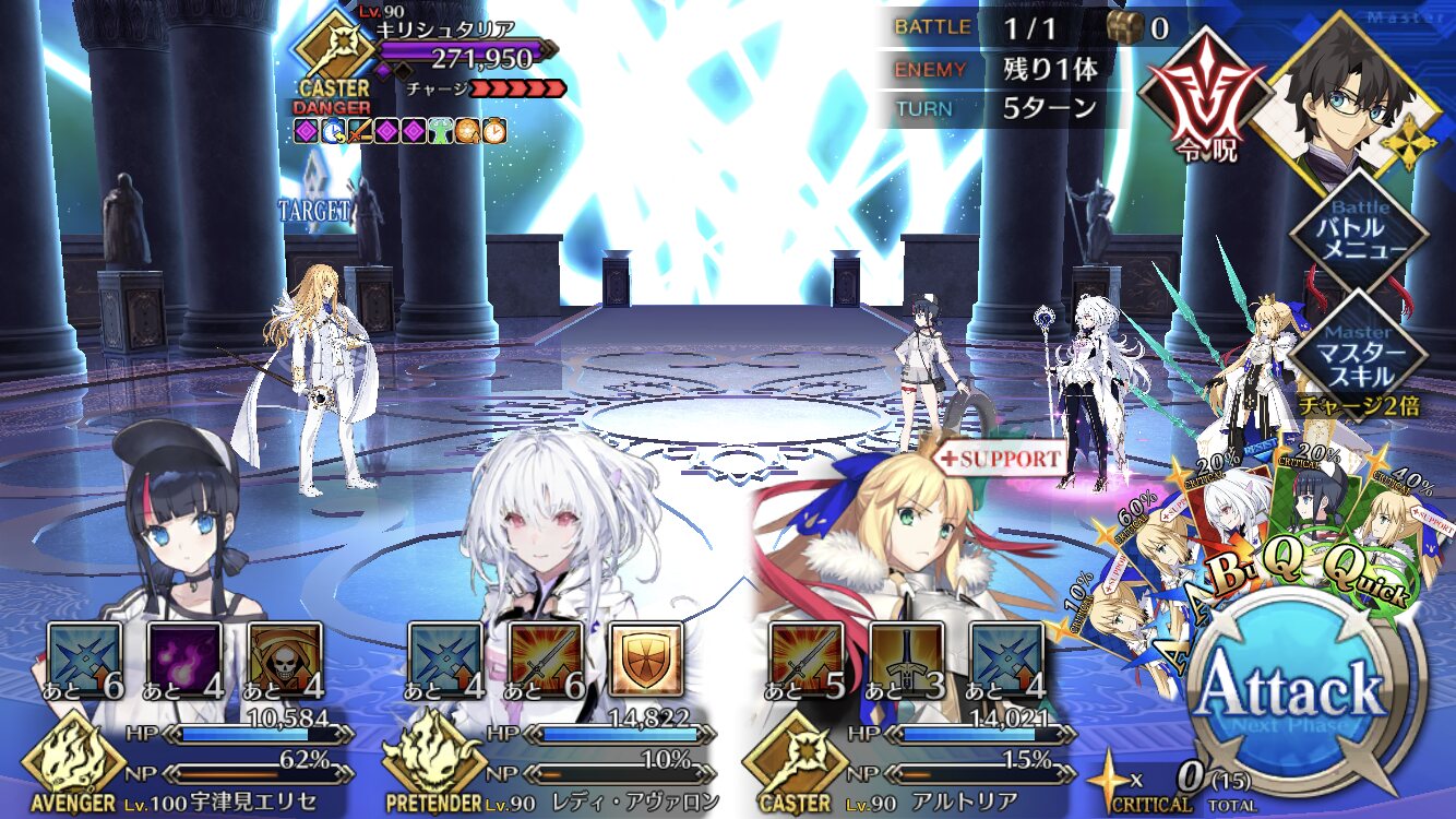 そしてサポートの方向性の狭さも、スターもNPも必要ない神性キャラなら何にも問題なし、特に速攻以外の腰据えた戦い方ができるキャラならこのサポートの方向性でもやり合えるイアソンのカリスマのバフ対象がアトランティスの面子まで増えたら良いなぁって考えてる(強化)
