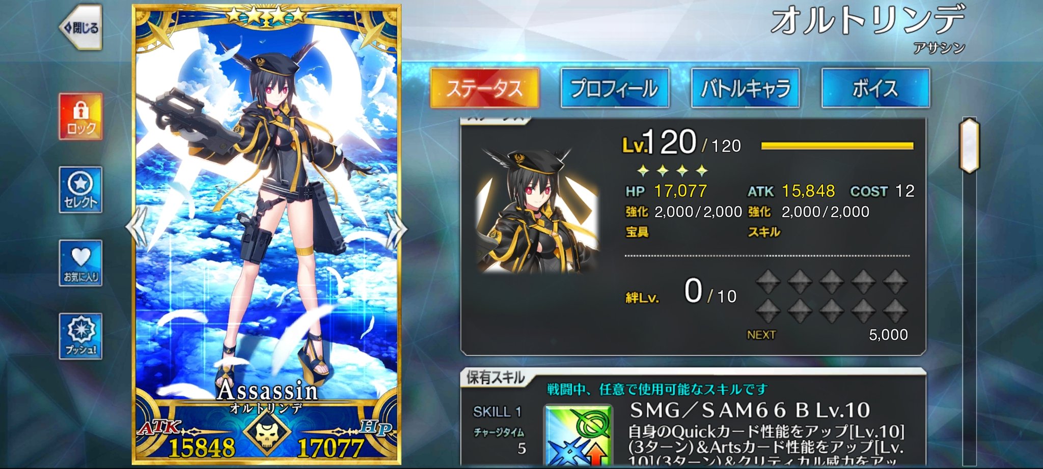 瞬間火力出るキャラでも場持ちの良さに定評があるわけでもないから間違ってもメインアタッカーにはなれないし、サポーターとしても火力面は女神の気まぐれ1本だからスターやNP、防御面では補助できない