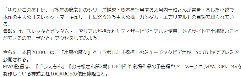 「何か皆がぼくの知らない水星の魔女の話をしてる…?…………。…なるほど!0話にあたるプロローグがあったのか!」