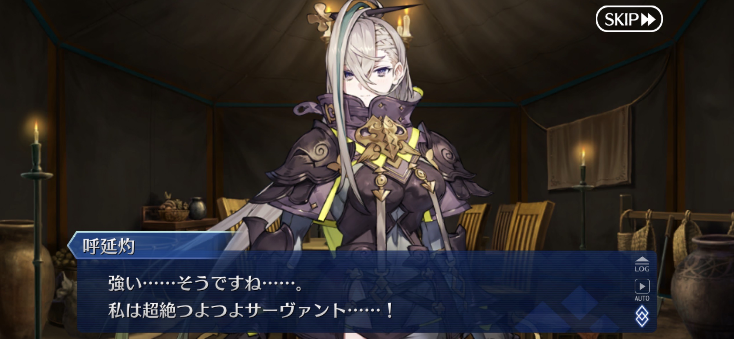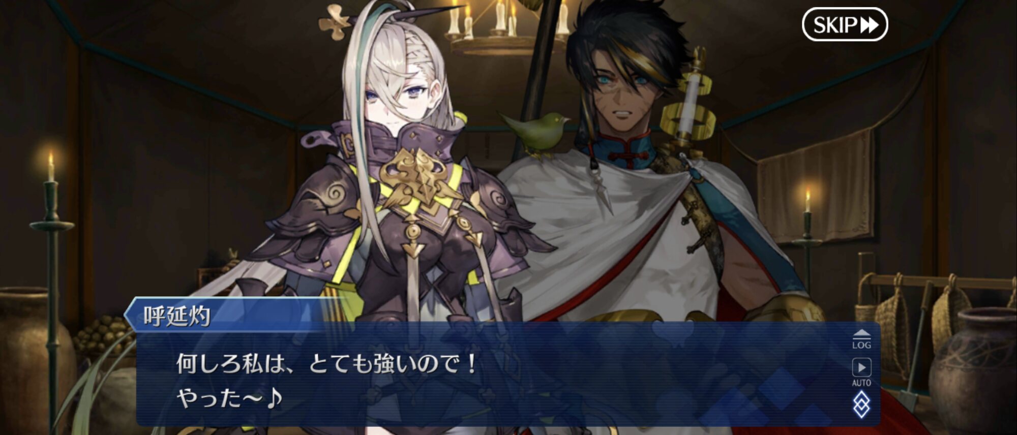 カルナさんの場合、「めっちゃ強いじゃん、でも自分も負けないよ!楽しもうぜ!(要約)」みたいなことを言うだけで、呼延灼さんは心折れて退去しそう>>863