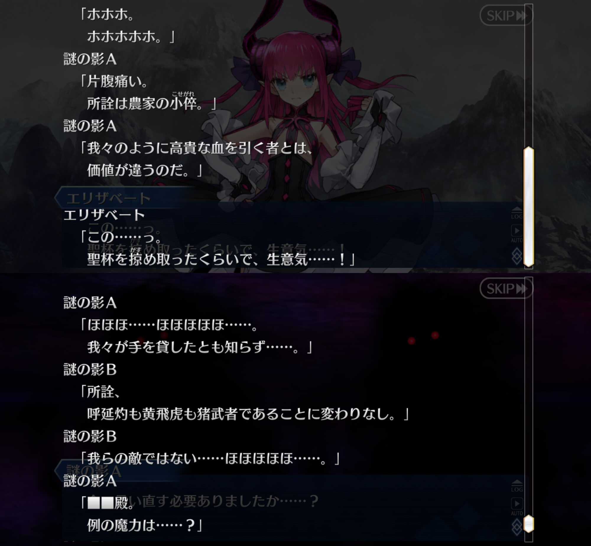 こんな感じかな多分黒影の2人張角とカーミラさんかな?
