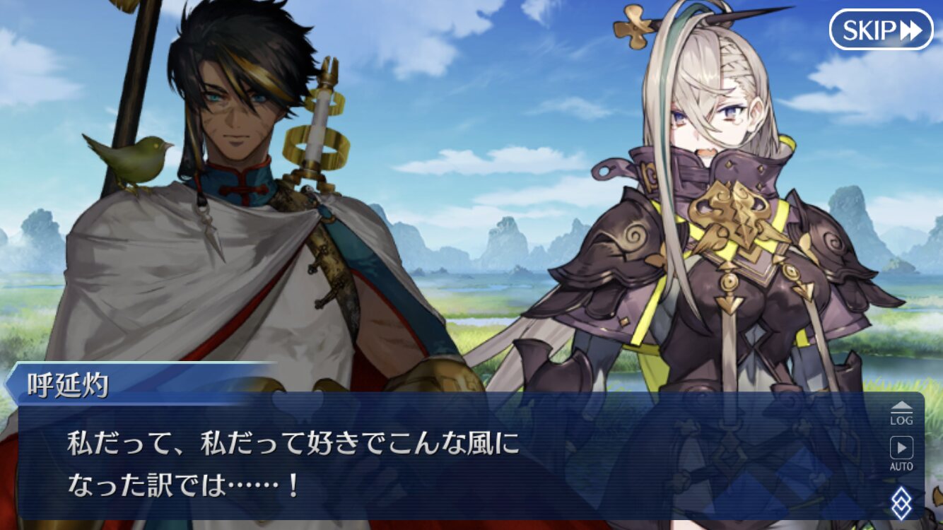 季節イベの醍醐味ということで…幻霊が英霊として成立するのは基本的に困難であるという事実があって、特に物語から生じたものは記録はあれど召喚されたときが初めての人生と言っていいのかもしれないと思うと、同じ物語から生じた幻霊なのに自分は優先されず燕青が生き残ったとなれば、確かに苦い思いも抱えるかもしれない
