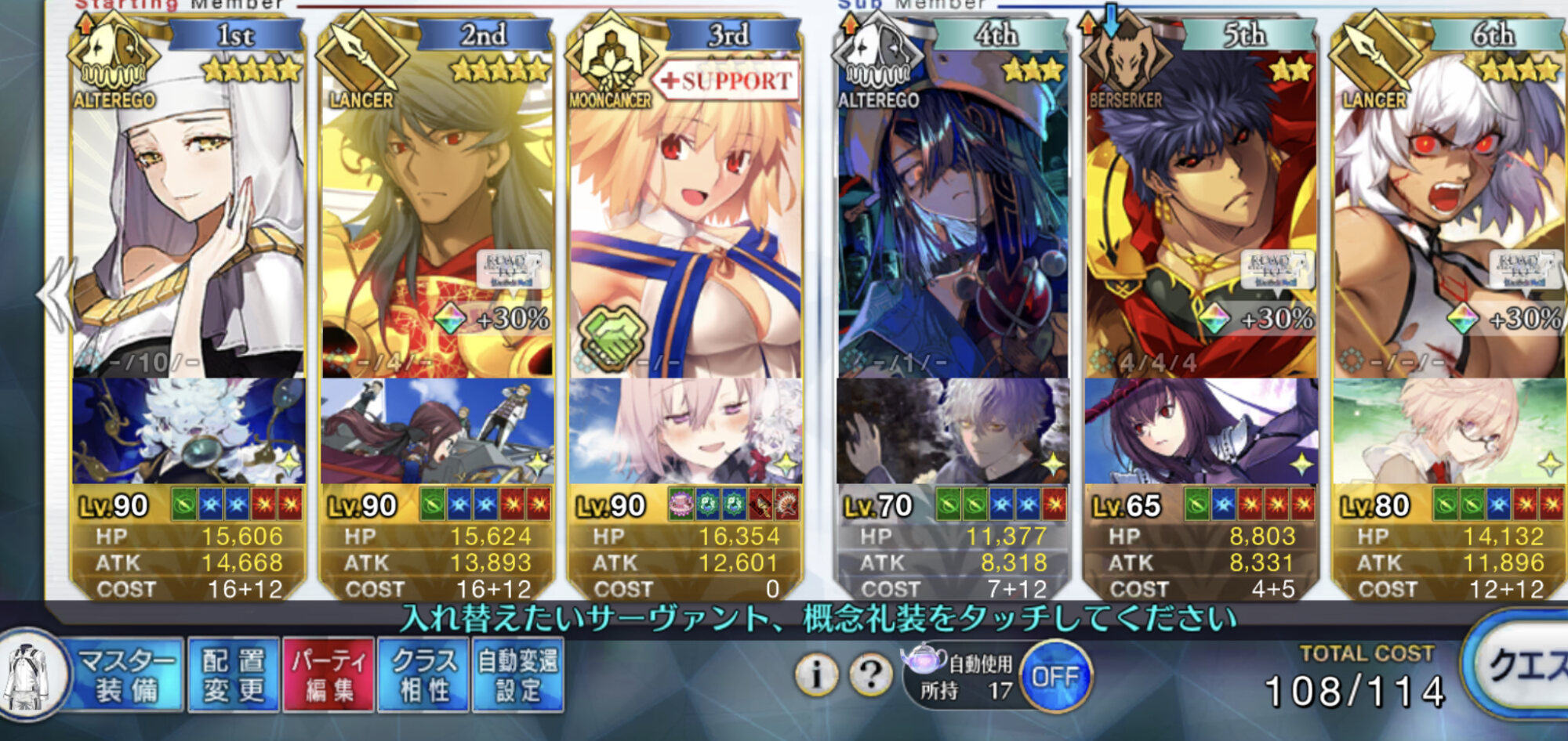 今回のスーパーリコレクションのキリシュタリア&カイニス戦をキャストリア未所持のために諦めていましたが、アドバイスを頂いて交換したバーゲストを編成したパーティーでノーコンクリア出来ました!