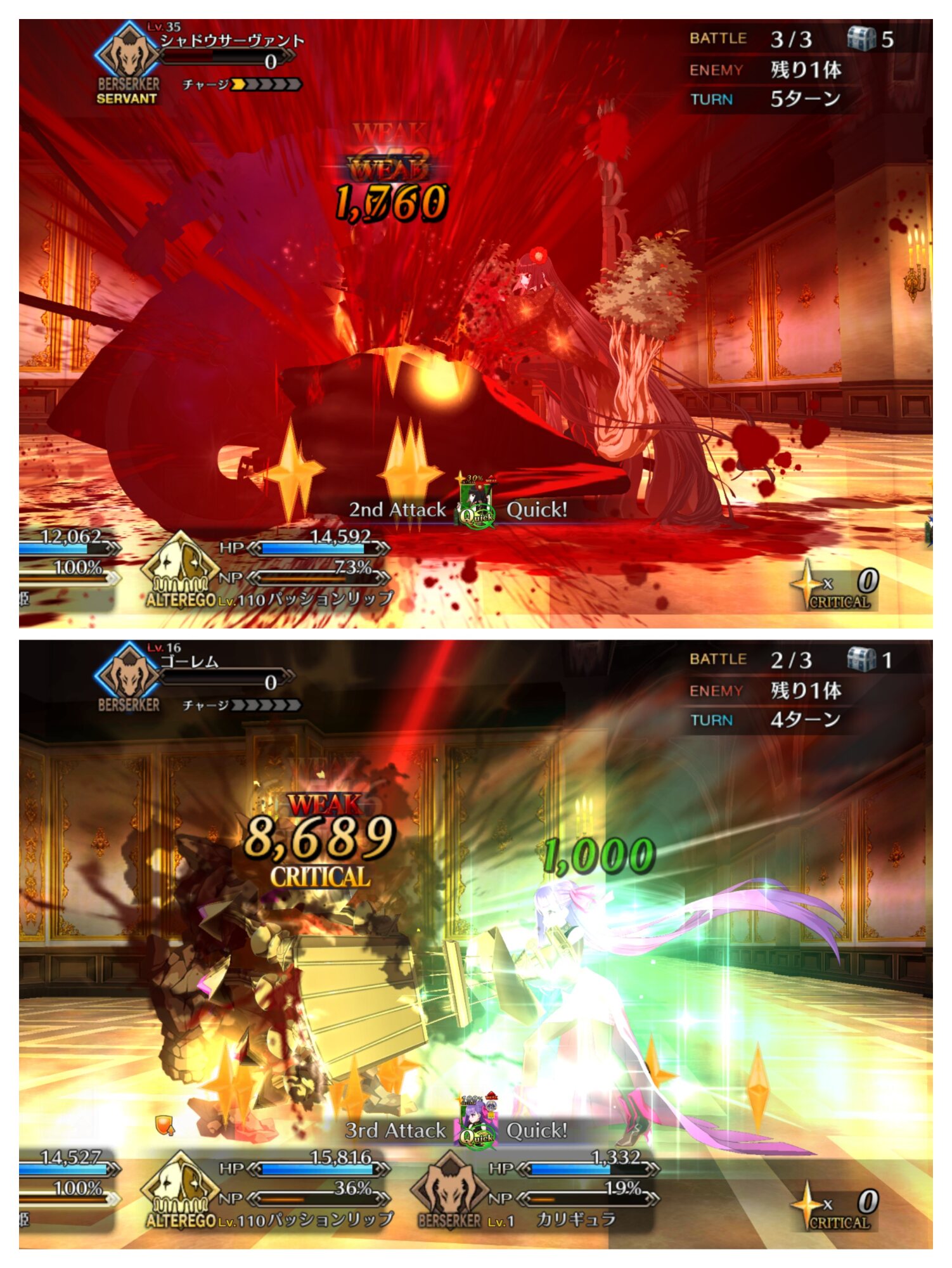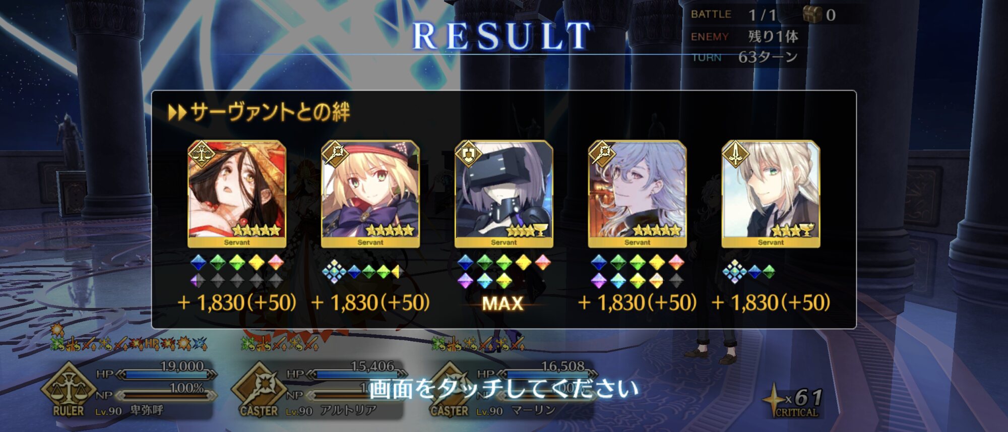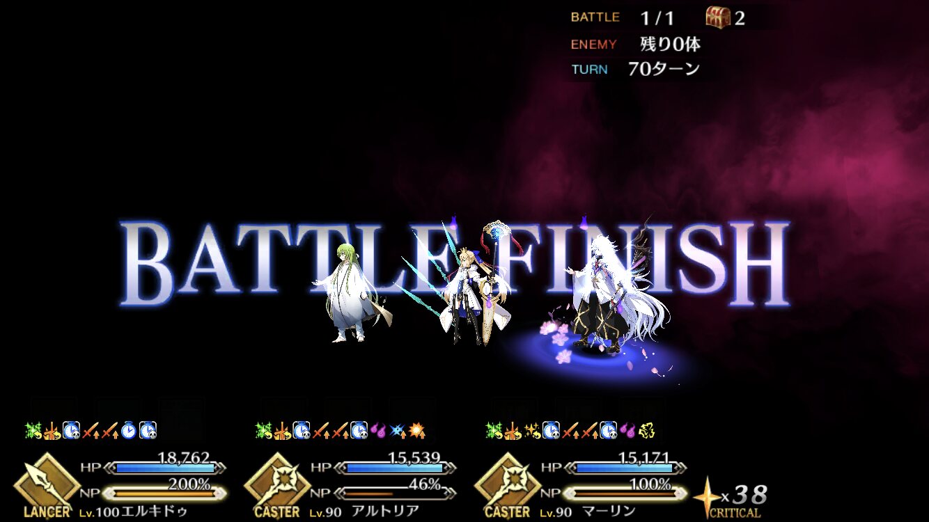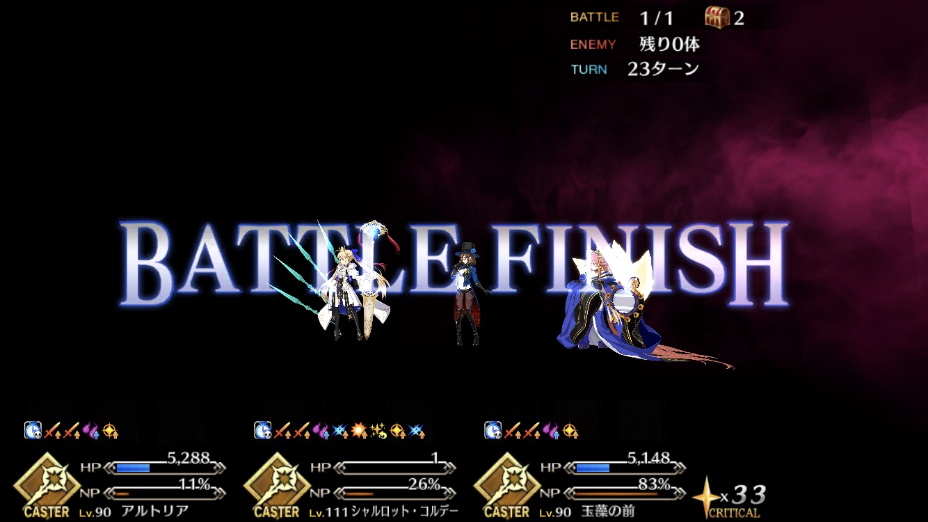 その後はバゲ子単騎で弱体無効・弱体解除を刻印したコマンドを織り交ぜ耐久。
