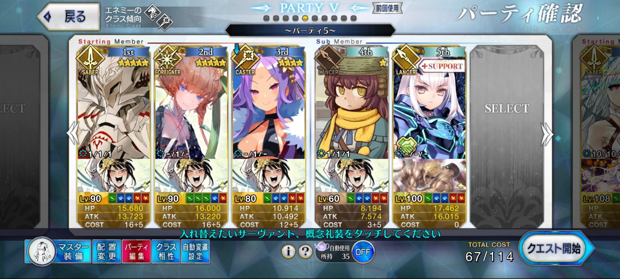 アヴェンジャーなら誰でもいいけど、コスト少なめなのと関係者的には入れたいのはあいつだけどアヴィ先生の強化クエ強制公会堂な件